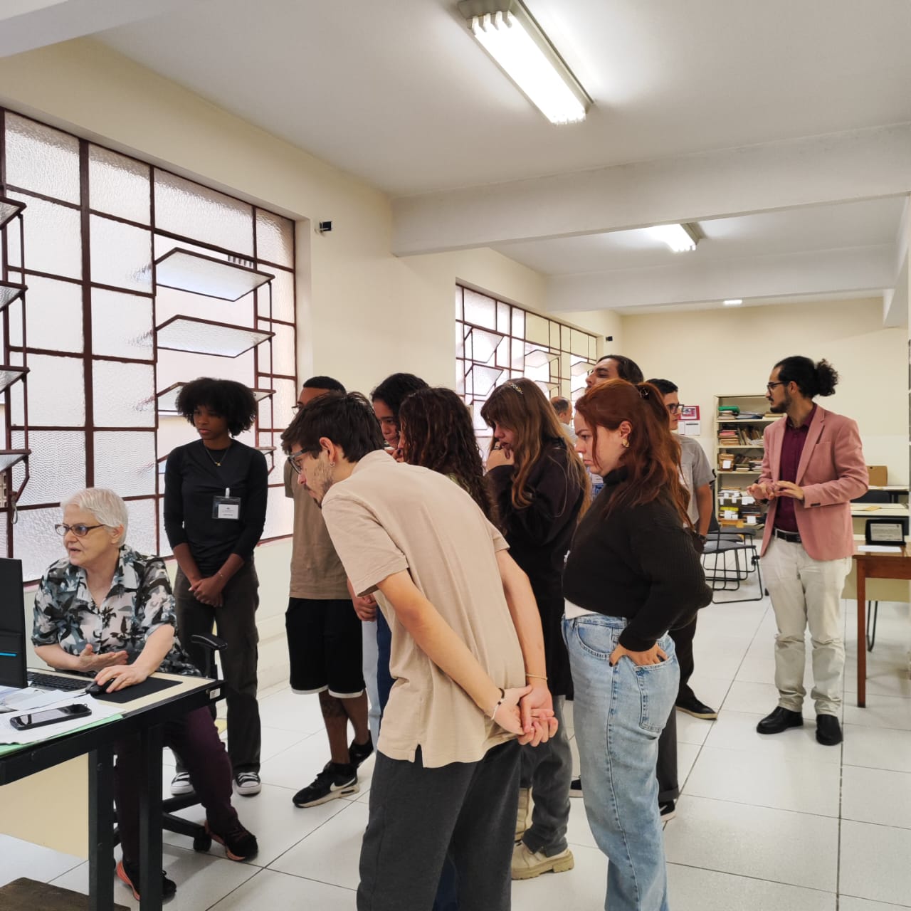 Em companhia do coordenador do projeto, o professor da Faculdade de Direito Arthur Barêto, os alunos conheceram as instalações do Arquivo Central e um pouco de suas atividades.