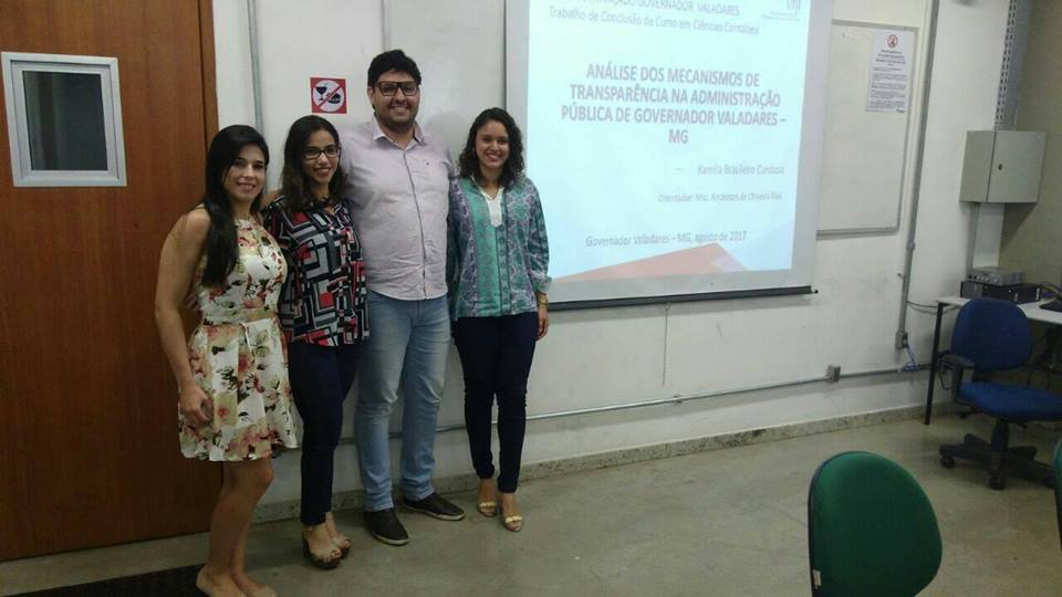 Nesta quarta-feira (02), a aluna da primeira turma do curso de Ciências Contábeis Kamila Brasileiro Cardoso, teve a defesa da sua Monografia, Aprovada! O tema defendido foi: ”Análise dos Mecanismos de Transparência na Administração Pública de Governador Valadares – MG”, orientado pelo professor Anderson de Oliveira Reis. Confira as fotos da apresentação:
