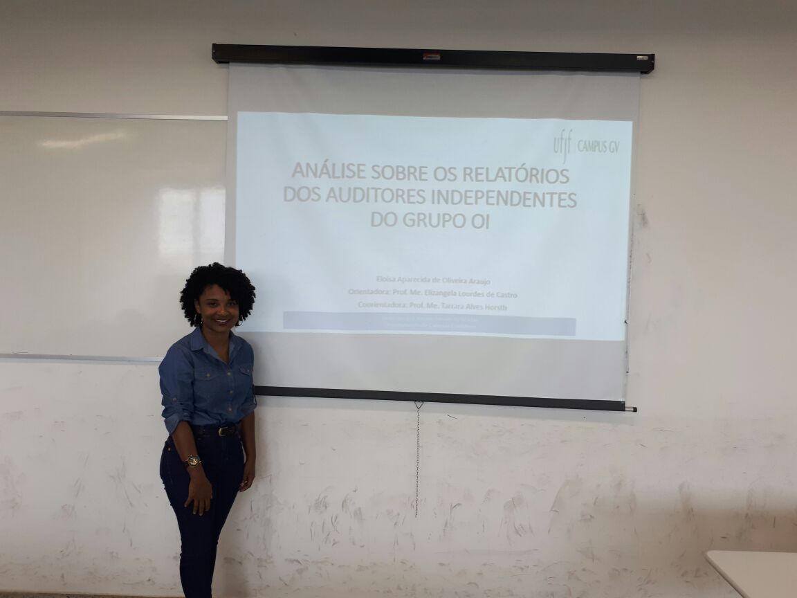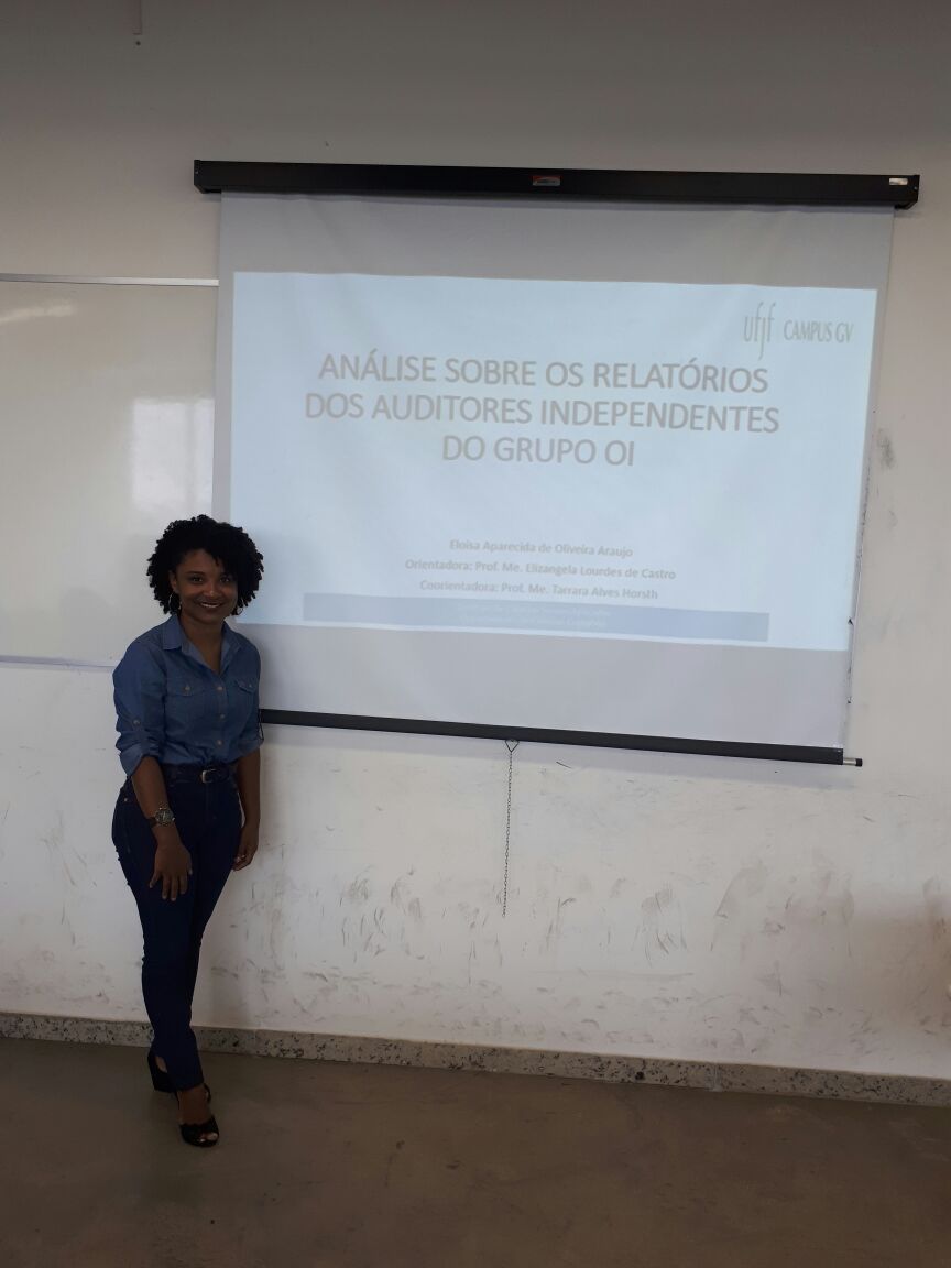 Nesta sexta-feira (01), a aluna Eloisa Aparecida de Oliveira Araujo do curso de Ciências Contábeis, teve a defesa da sua Monografia, Aprovada! O tema defendido foi: ”Análise sobre os relatórios dos Auditores independentes do grupo Oi”, orientado pela professora Elizangela Lourdes de Castro. Confira as fotos da apresentação: