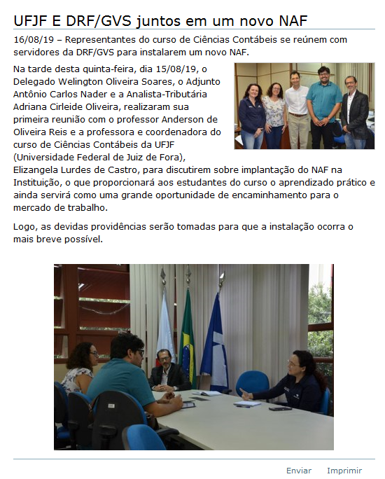 UJFJF-GV e Receita Federal/GV discutem a implantação do Núcleo de Prática Contábil