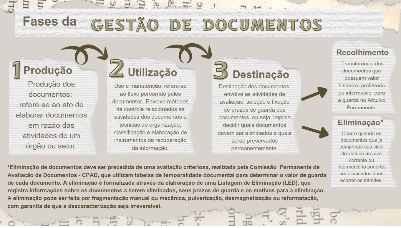 Em suma, a Gestão de Documentos compreende as seguintes fases: