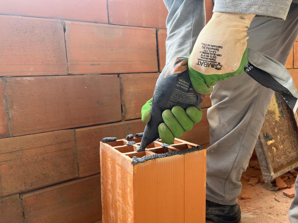 “Você já viu alguém assentando tijolo da maneira tradicional? A massa é jogada, cai no chão e parte vai para o lixo. Com a bisnaga, eu não tenho esse desperdício. A obra fica limpa, sem resíduos”, pontua Loureiro. Ele complementa, dizendo que a técnica permite maior precisão e agilidade. “Nós aplicamos a massa com o biquinho da bisnaga, colocamos o tijolo e ele não sai mais. Não há desperdício, tudo é mais eficiente e a obra é muito mais limpa”, explica o engenheiro.