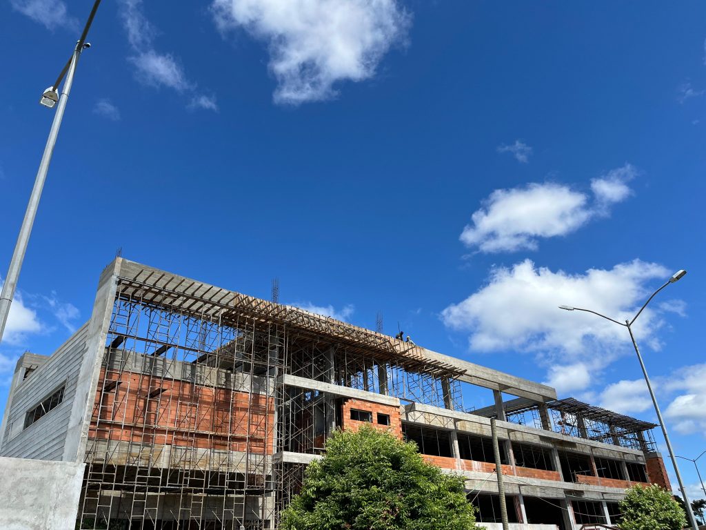 Obras em andamento no Módulo I do PartecJF, no campus da UFJF, que contará com espaços dedicados ao desenvolvimento tecnológico e à conexão entre universidade, empresas e sociedade. (Foto: Comunicação/PartecJF)