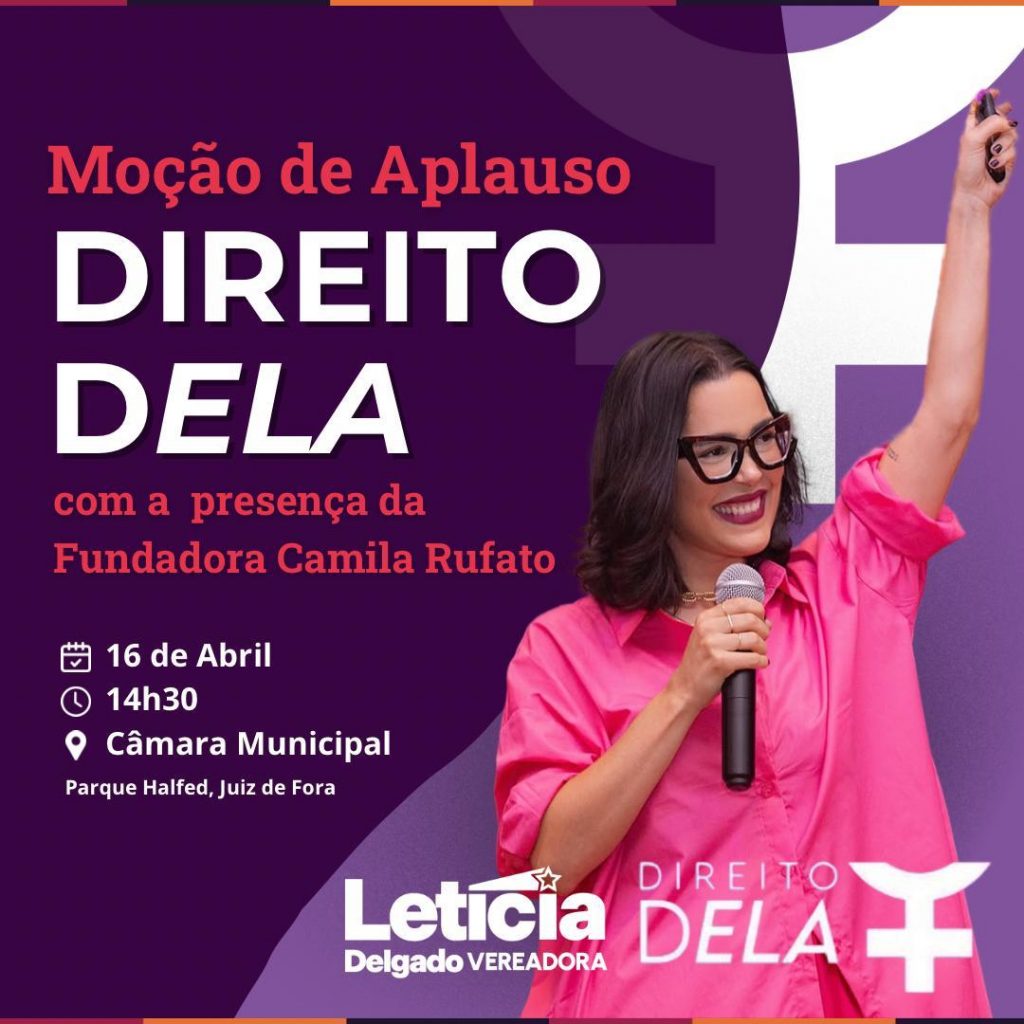 A moção é uma proposição da vereadora Letícia Delgado (PT), e a homenagem será entregue à fundadora da Direito Dela, Camila Rufato.