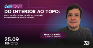 Nesta edição, o palestrante convidado é o Marcos Baião, profissional com mais de 28 anos de experiência em tecnologia, inovação e liderança, atuando como CTO, CIO e investidor. Conduziu transformações digitais e desenvolveu produtos com ROI comprovado em empresas como Otacom, Deal e Maitha, além de liderar projetos para marcas como Serasa, Nubank, Shell e Banco Digio.