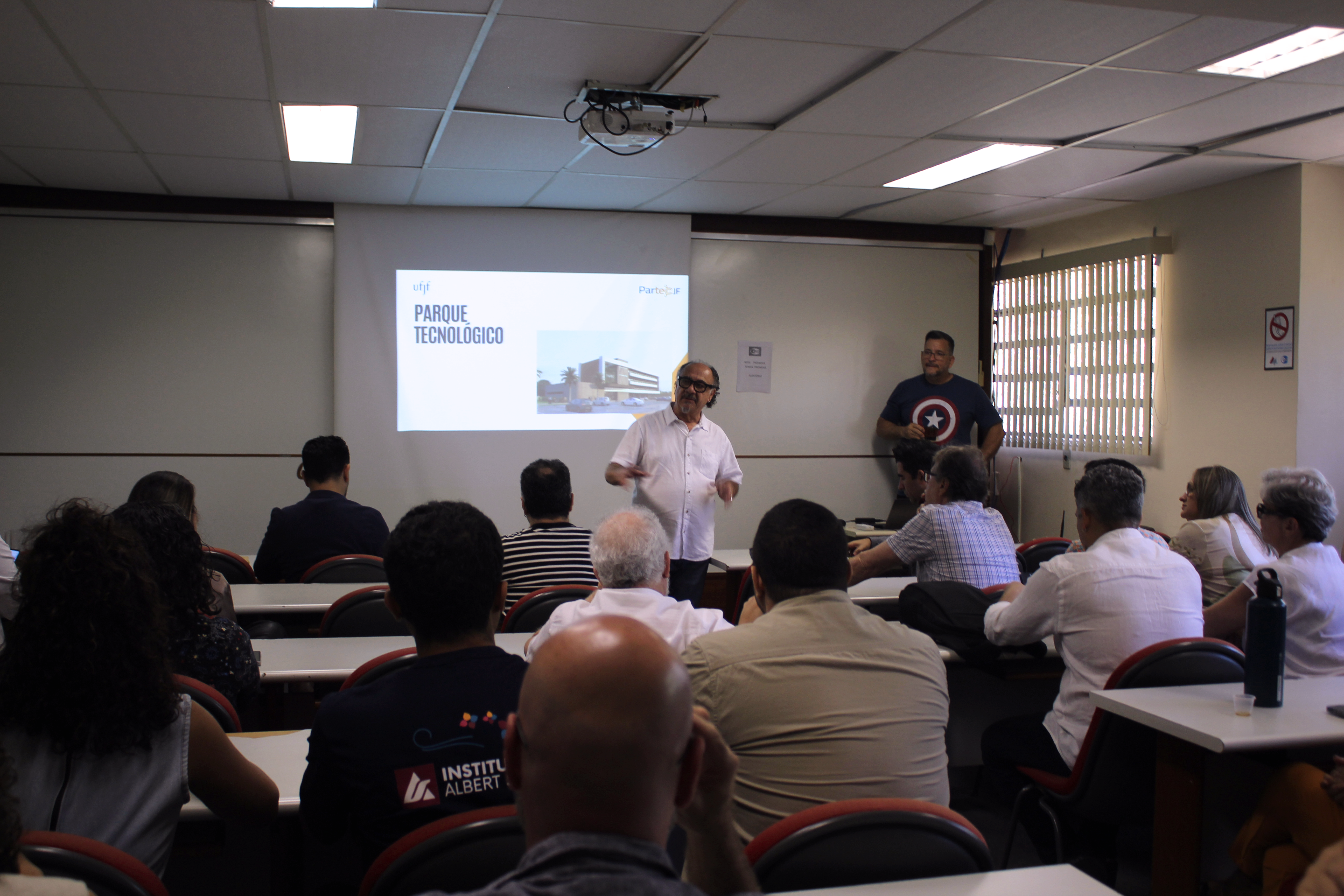 Na última sexta-feira (14), o Centro Regional de Inovação e Transferência de Tecnologia (Critt) em parceria com o Partec JF reuniram representantes da área cultural de Juiz de Fora para apresentações sobre novos projetos que serão implementados na cidade. A abertura da reunião contou com falas de Rogério Freitas (FUNALFA), Ignacio Delgado (SEDIC), Eduardo Crochet (SETUR), Marcus Medeiros (Procult/UFJF) e Fabrício Campos (Proinova/UFJF).