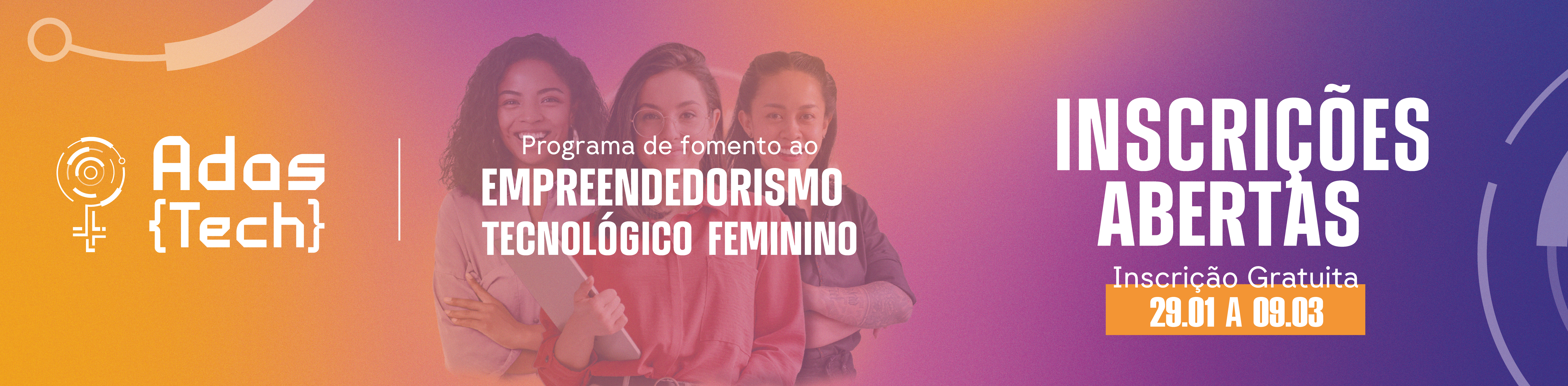Estão abertas as inscrições para o Adas Tech 2026, iniciativa voltada a apoiar o empreendedorismo tecnológico e inovador do público feminino de todo o país. As inscrições ocorrem entre os dias 29 de janeiro á 09 de março e podem ser realizadas através do formulário de inscrição via Edital Adas Tech 2026.