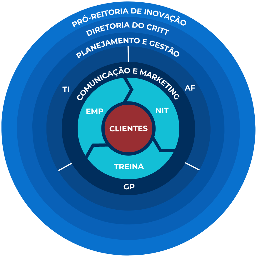 Planejamento e Gestão: responsável pela manutenção do Sistema de Gestão da Qualidade dos serviços do Critt, pelo planejamento estratégico e pelas parcerias institucionais.