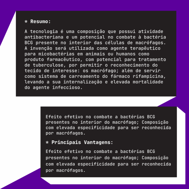 Efeito efetivo no combate a bactérias BCG presentes no interior do macrófago; Composição com elevada especificidade para ser reconhecida por macrófagos.