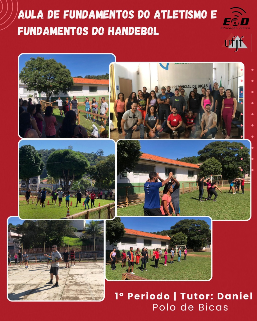 Os alunos do 1º período participaram das aulas de Fundamentos do Atletismo e Fundamentos do Handebol, com o tutor Daniel, aprofundando seus conhecimentos na vivência esportiva escolar.