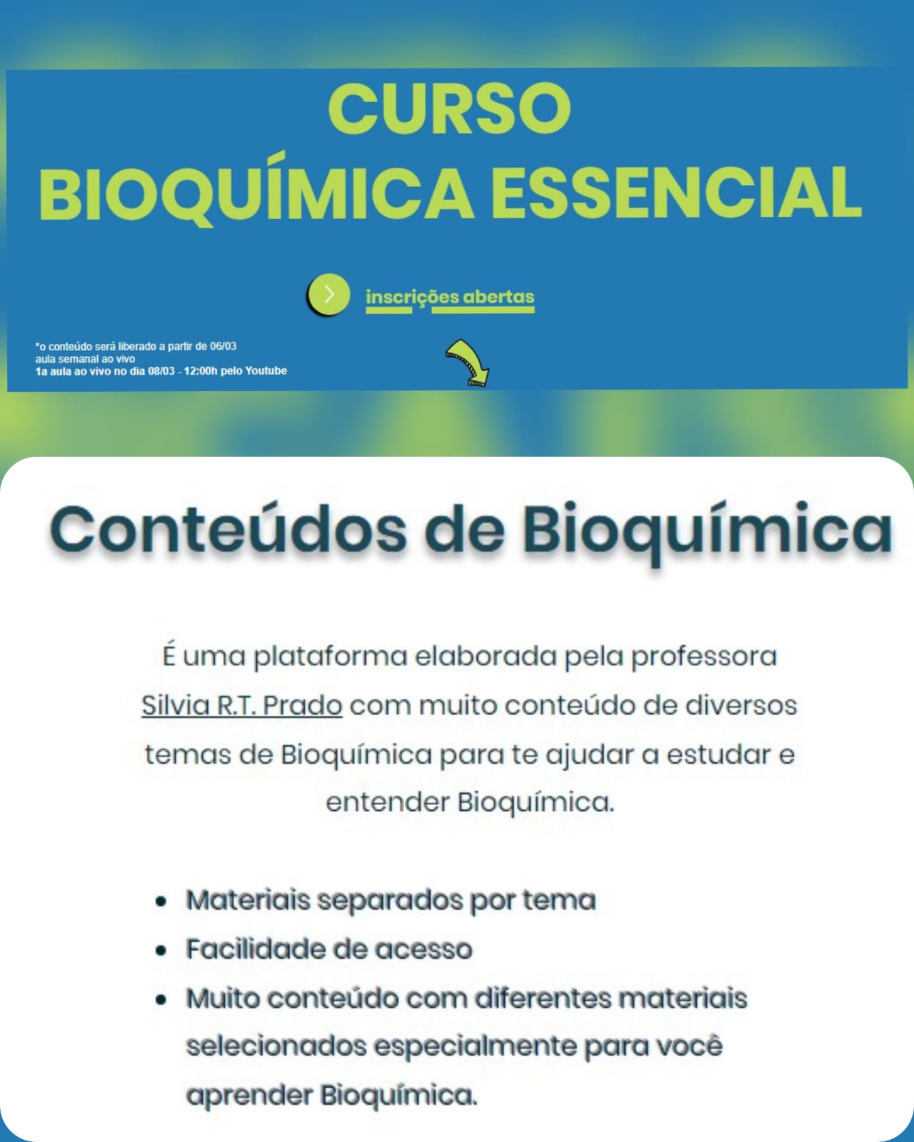 Oportunidade para estudantes dos cursos das áreas biológicas e da saúde: Curso de Bioquímica Essencial.