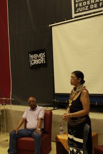 Participaram da mesa Luiz Gonzaga, mestre coroado, documentarista e pesquisador com mais de quatro décadas dedicadas à memória afro-indígena mineira, e Adryana Ryal, atriz, produtora cultural, doutoranda em Artes Cênicas e liderança do Movimento Indígena Ambo Taheantah, que atua no resgate e valorização do povo Puri, na Zona da Mata. Adryana também é conhecida por seu nome indígena, Petara Puri.