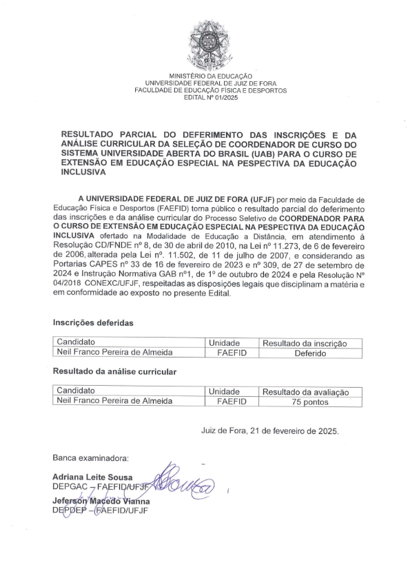 Resultado parcial do Edital Educação Especial na perspectiva da Educação Inclusiva