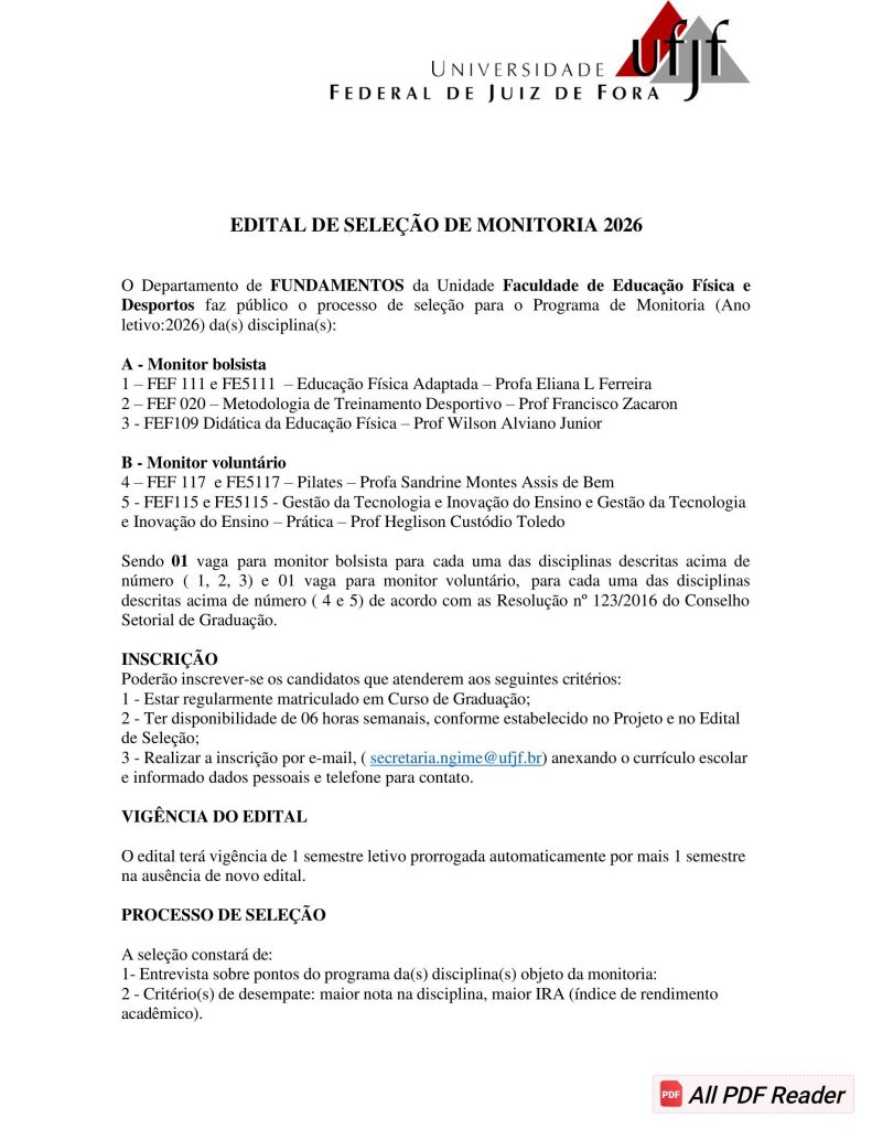 Edital de Seleção de Monitoria FAEFID 2026