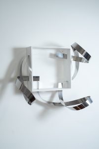 Entre os destaques da mostra está “Filetes”, obra escultórica em aço inox e MDF. Para sua criação, Marilda Rezende precisou buscar o auxílio de uma metalúrgica para a realização de cortes, dobras e pequenas perfurações em chapas de metal utilizadas. Também merece atenção a obra “Fibonacci”, criada em aço corten, que referencia a famosa sequência numérica proposta pelo matemático italiano Leonardo de Pisa.