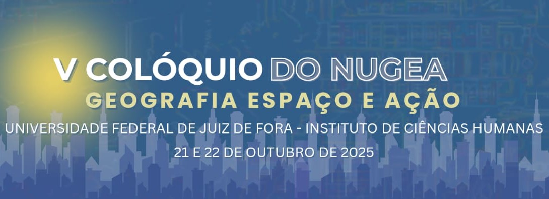 O Núcleo de Pesquisa Geografia, Espaço e Ação (NuGea), vinculado ao Departamento de Geociências da UFJF, convida toda a comunidade acadêmica e interessados a participarem do V Colóquio do NuGea, que acontecerá nos dias 21 e 22 de outubro de 2025, no Instituto de Ciências Humanas da UFJF.
