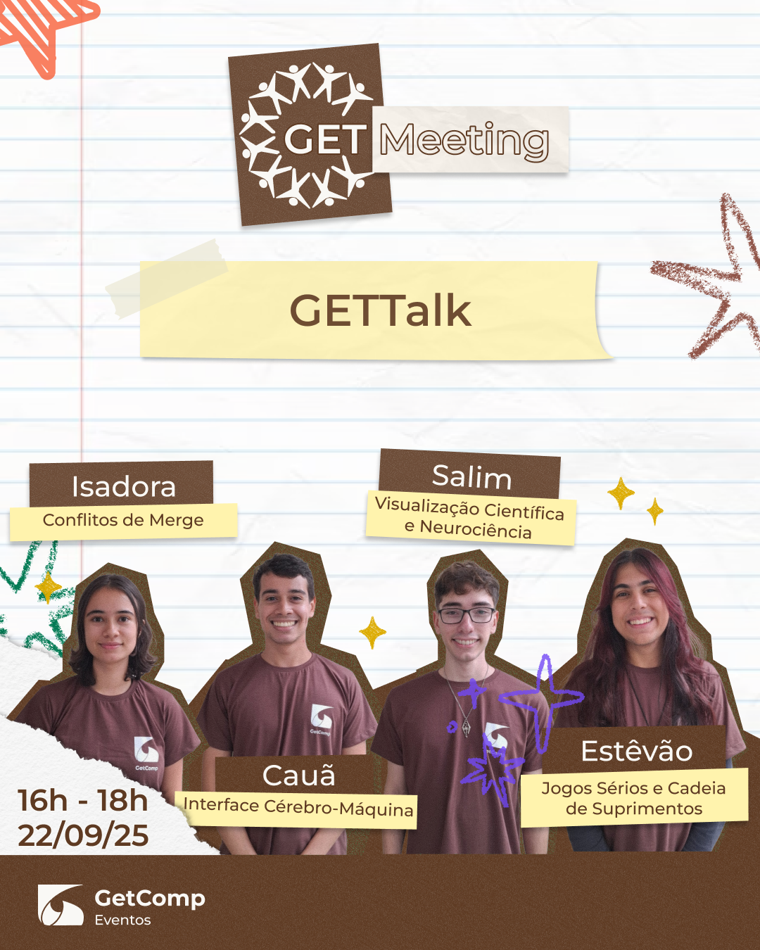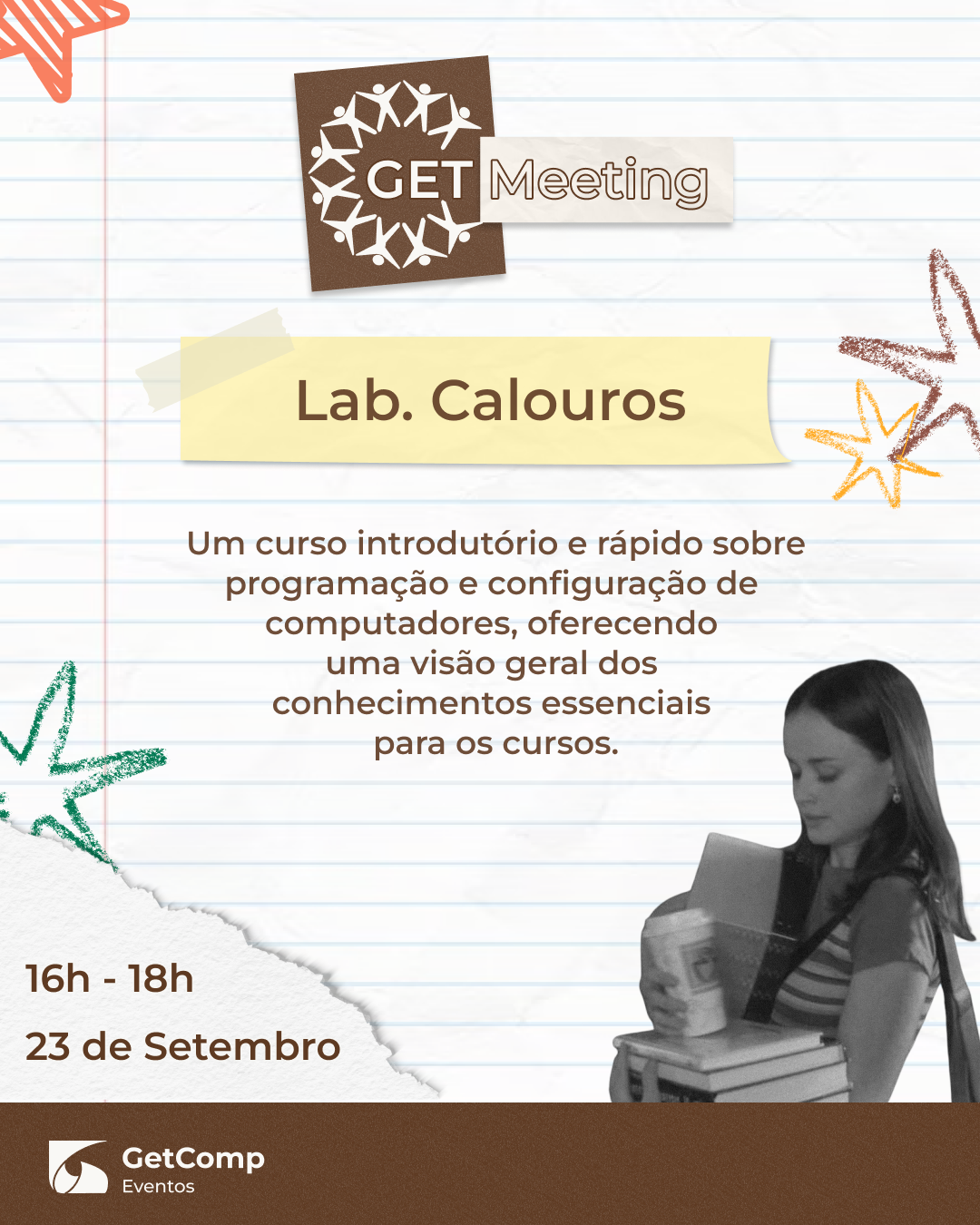 O XIII GETMeeting é um evento organizado pelo Grupo de Educação Tutorial do curso de Ciência da Computação (GETComp) voltado para os alunos do Departamento de Ciência da Computação e áreas afins da UFJF e é aberto para a participação de pessoas interessadas em tecnologia. O evento é constituído de palestras e minicursos a serem ministrados por alunos ou profissionais ligados à área de Ciência da Computação, além da apresentação de trabalhos no Workshop de Trabalhos de Graduação e palestras. Neste ano, o evento será direcionado para calouros e calouras. A programação inclui atividades de integração para ambientação, introdução a noções básicas de programação e uma exploração completa do Instituto de Ciências Exatas (ICE)