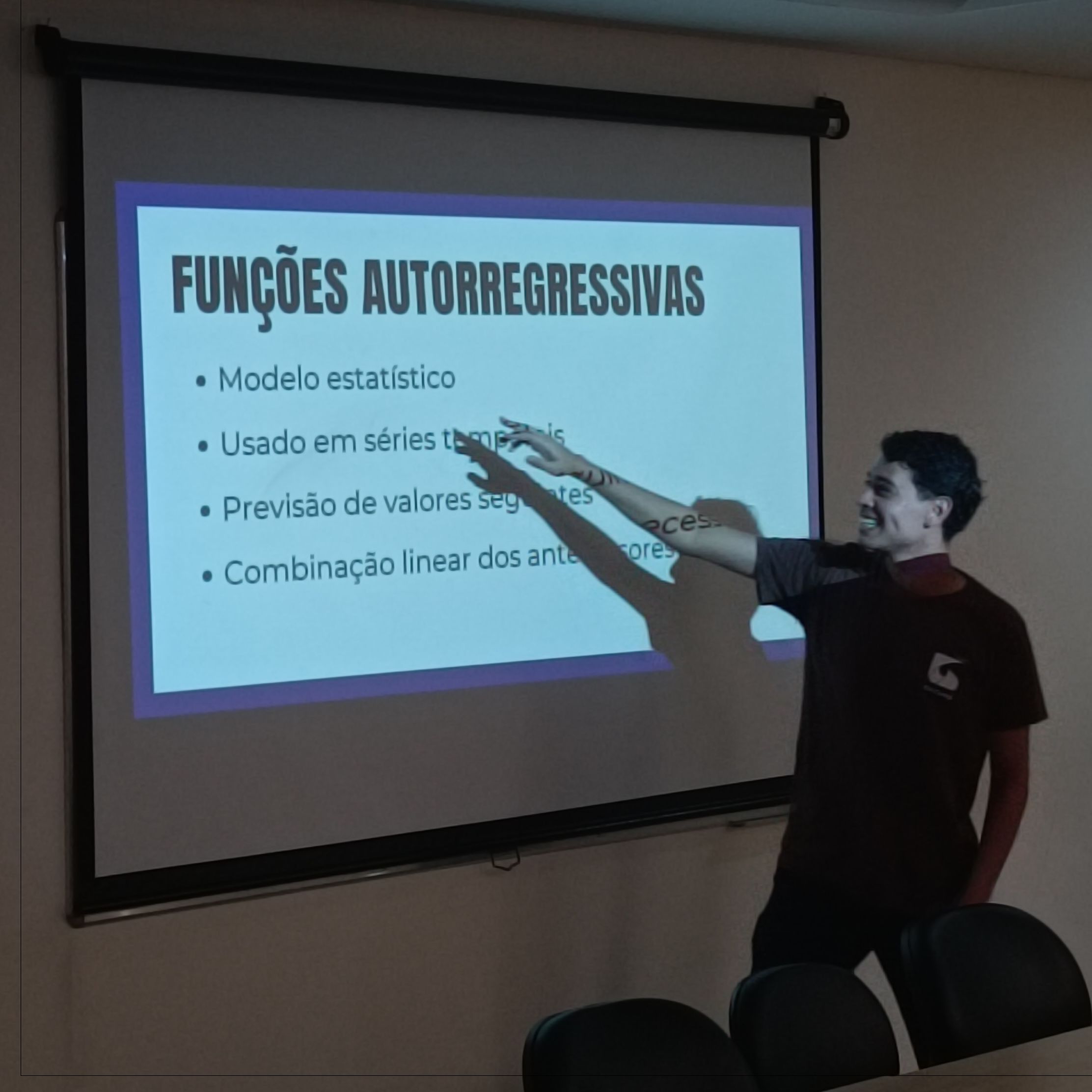 Apresentei a pesquisa sobre Interface Cérebro Máquina (BCI) da qual faço parte. De uma maneira geral, o trabalho tem o intuito de investigar o uso de funções autorregressivas como extratores de características em sistemas BCI. Iniciei explicando alguns conceitos muito importantes para entender a motivação do estudo, como a definição de BCI e suas etapas. Em seguida expus um pouco a respeito da forma em que os experimentos foram executados e, por fim, sobre os resultados parciais naquele momento.