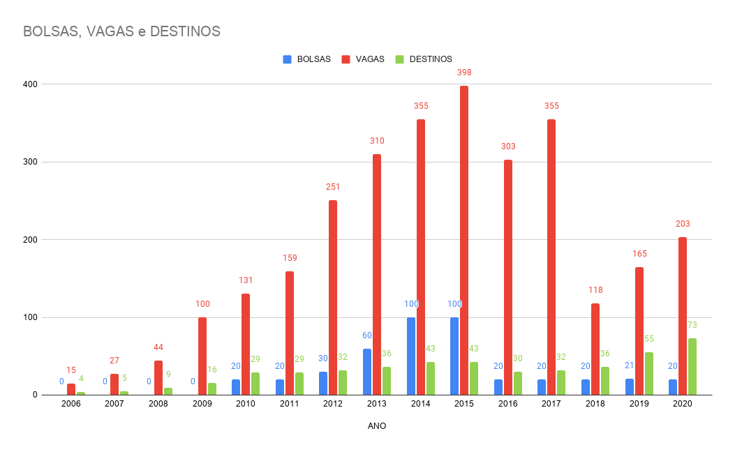 Desde 2010, com a publicação da Resolução 16/2010, do CONSU, instituiu-se a Bolsa de Intercâmbio Internacional. Atualmente, a Resolução 47/2023 é a que rege a distribuição de bolsas do PIIGRAD. Essa distribuição está vinculada à disponibilidade orçamentária e é direcionada aos primeiros classificados no processo de seleção, conforme o grupo de ingresso a que pertença o(a) candidato(a).