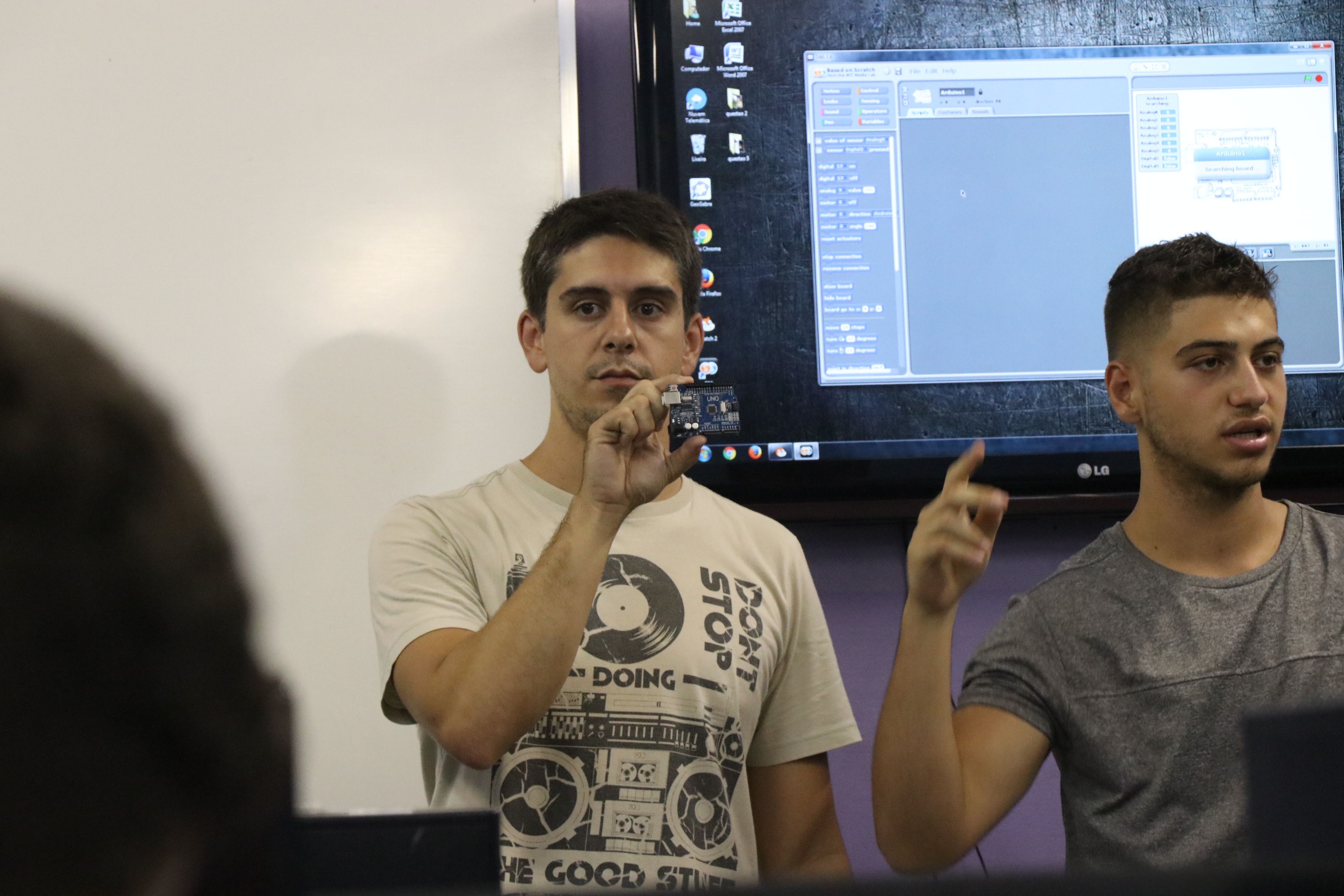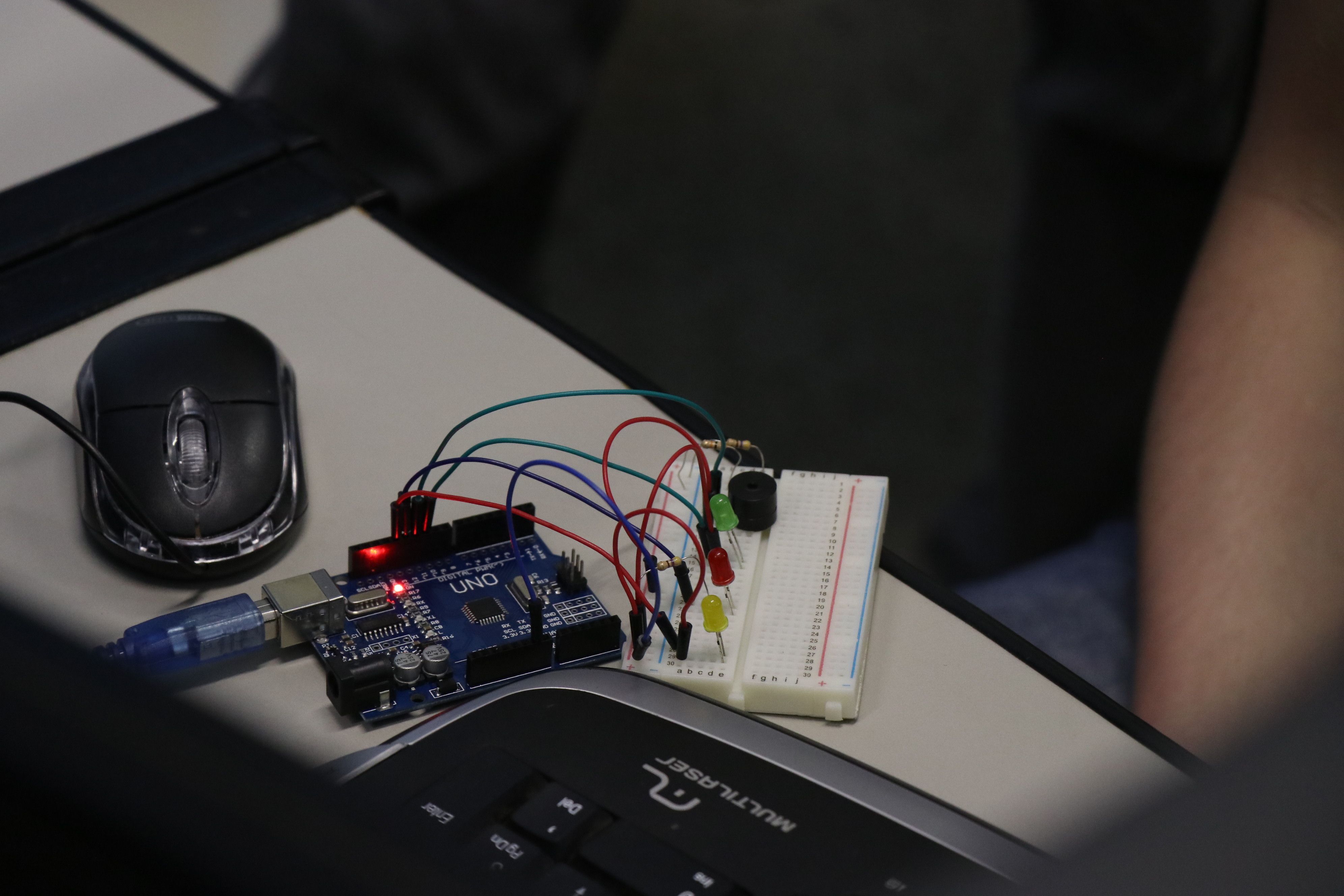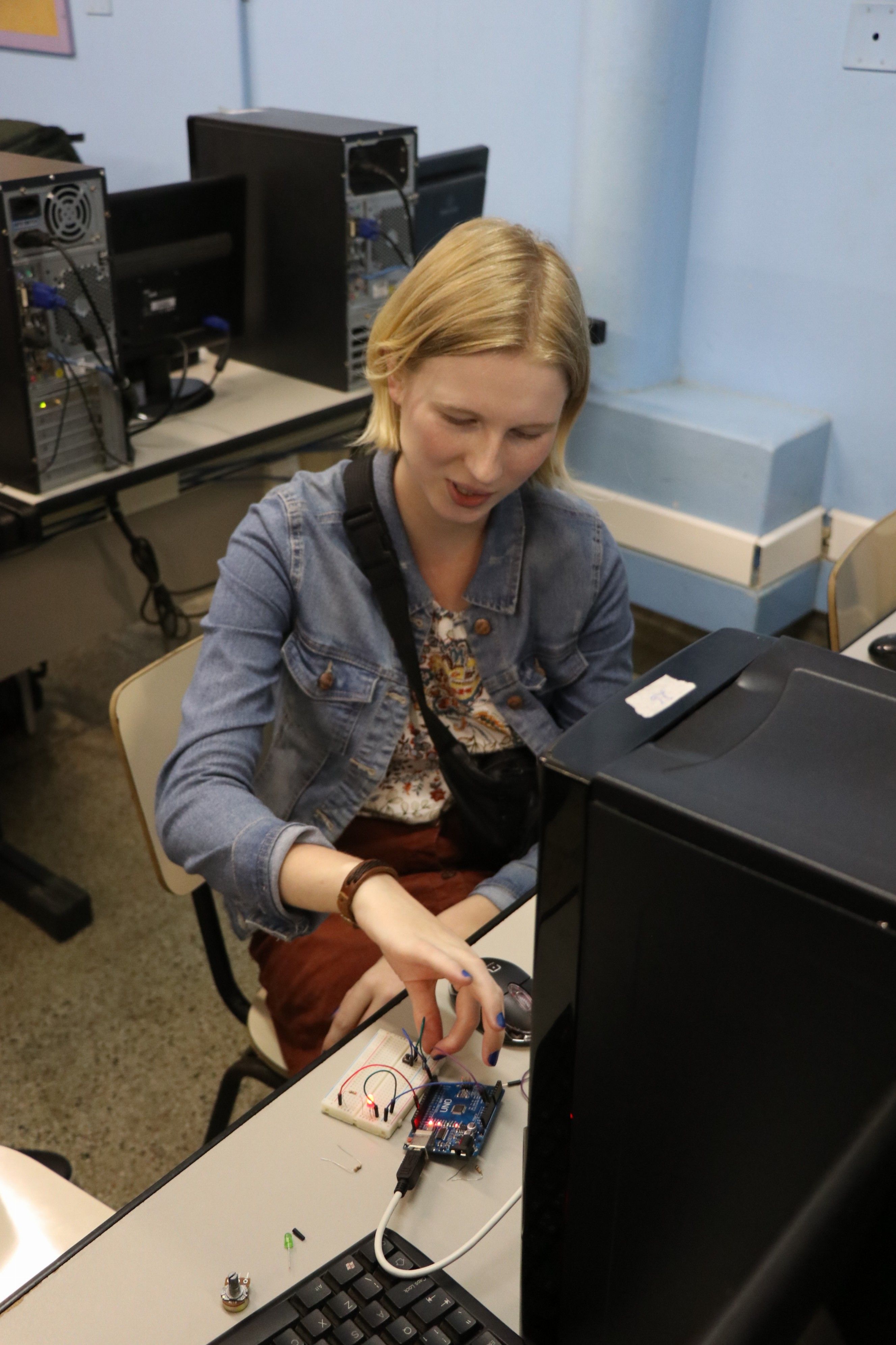 O objetivo da oficina, ministrada pelos professores Leonardo da Silva e Felipe Rezende, é fazer uma pequena introdução de projetos desenvolvidos no Colégio de Aplicação, que vai desde programação de computadores até eletrônica básica. De acordo com a programação do curso, os alunos dinamarqueses terão a oportunidade de projetar e montar circuitos por meio de softwares de programação visual. Além disso, conheceram melhor o objeto de estudo da oficina, as placas microcontroladoras capazes de criar dispositivos inteligentes que interagem com o ambiente por meio de sensores e atuadores.