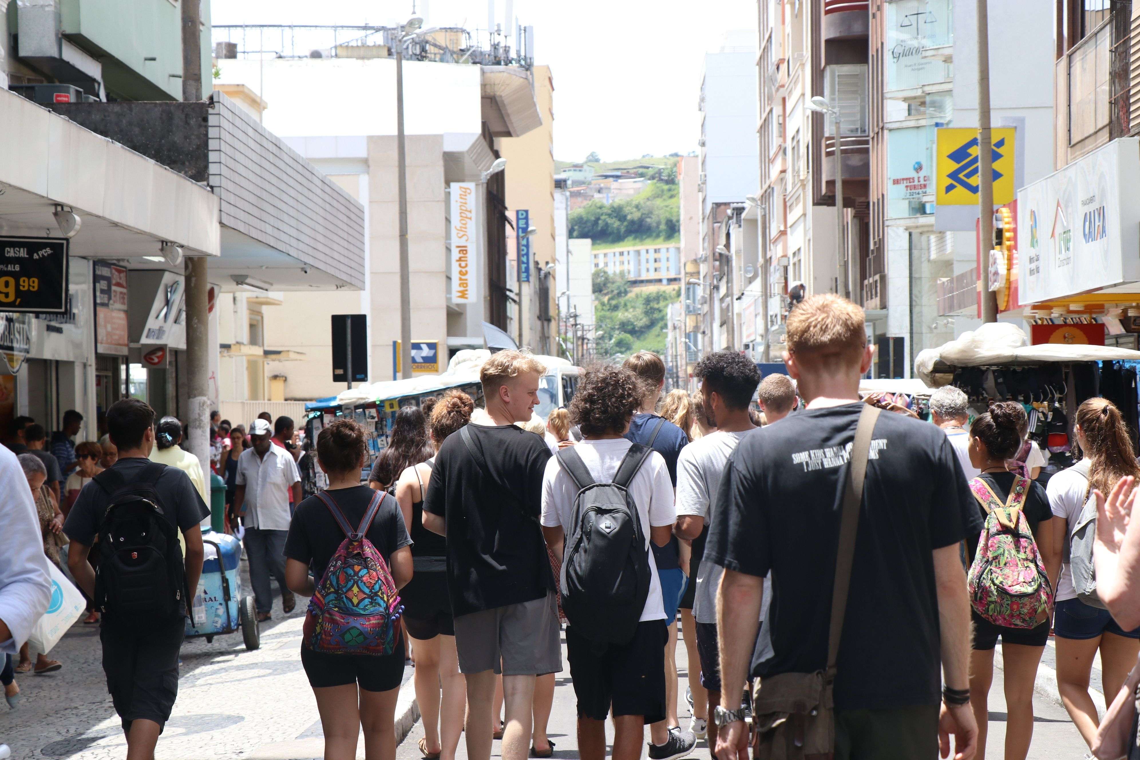 Na última quinta-feira (22), alunos dinamarqueses que participam do intercâmbio com o Colégio de Aplicação João XXIII fizeram diversos registros fotográficos de Juiz de Fora. Locais como o centro da cidade, Cine Theatro Central e Mercado Municipal foram retratados pelos estudantes em uma atividade organizada pela professora do Departamento de Letras e Artes, Renata Oliveira Caetano. Além de servir como conhecimento sobre a cidade, o passeio também desempenhou função importante nas atividades desenvolvidas pela professora que tem relação com os projetos de extensão e pesquisa coordenados pela docente.