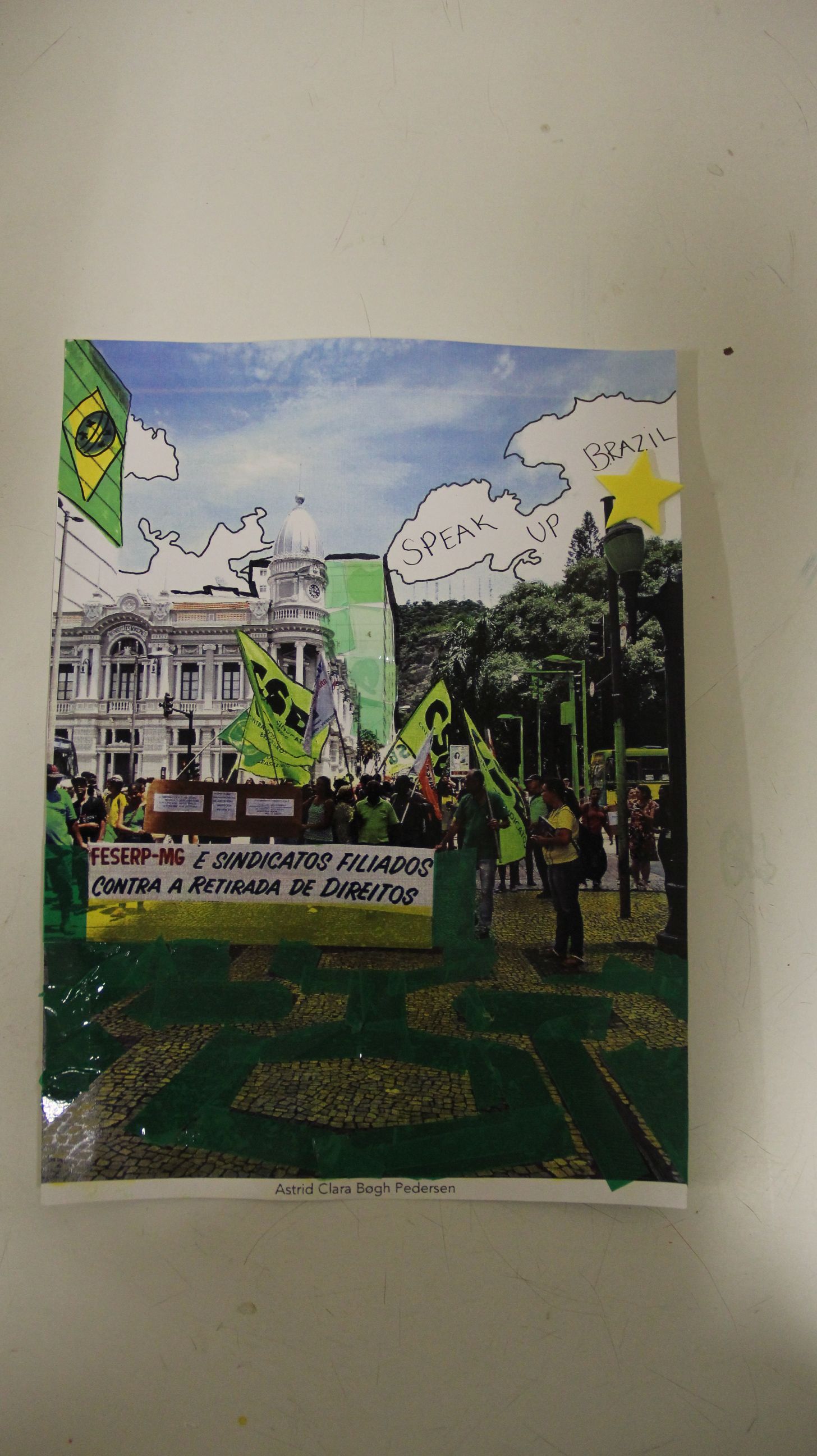 Para a atividade foram usados materiais diversificados como lã, miçangas, fitas, papeis vegetais, papel manteiga, papeis transparentes e canetas marcadoras. Alguns alunos desenharam sobre o papel vegetal, outros optaram por ressaltar as linhas das fotos ou editar a imagem, retirando alguns de seus elementos . Ao ressaltar as linhas de um poste do calçadão da cidade, Andreas Schougaard Madsen diz que Juiz de Fora o fez lembrar Nova York, nos Estados Unidos.