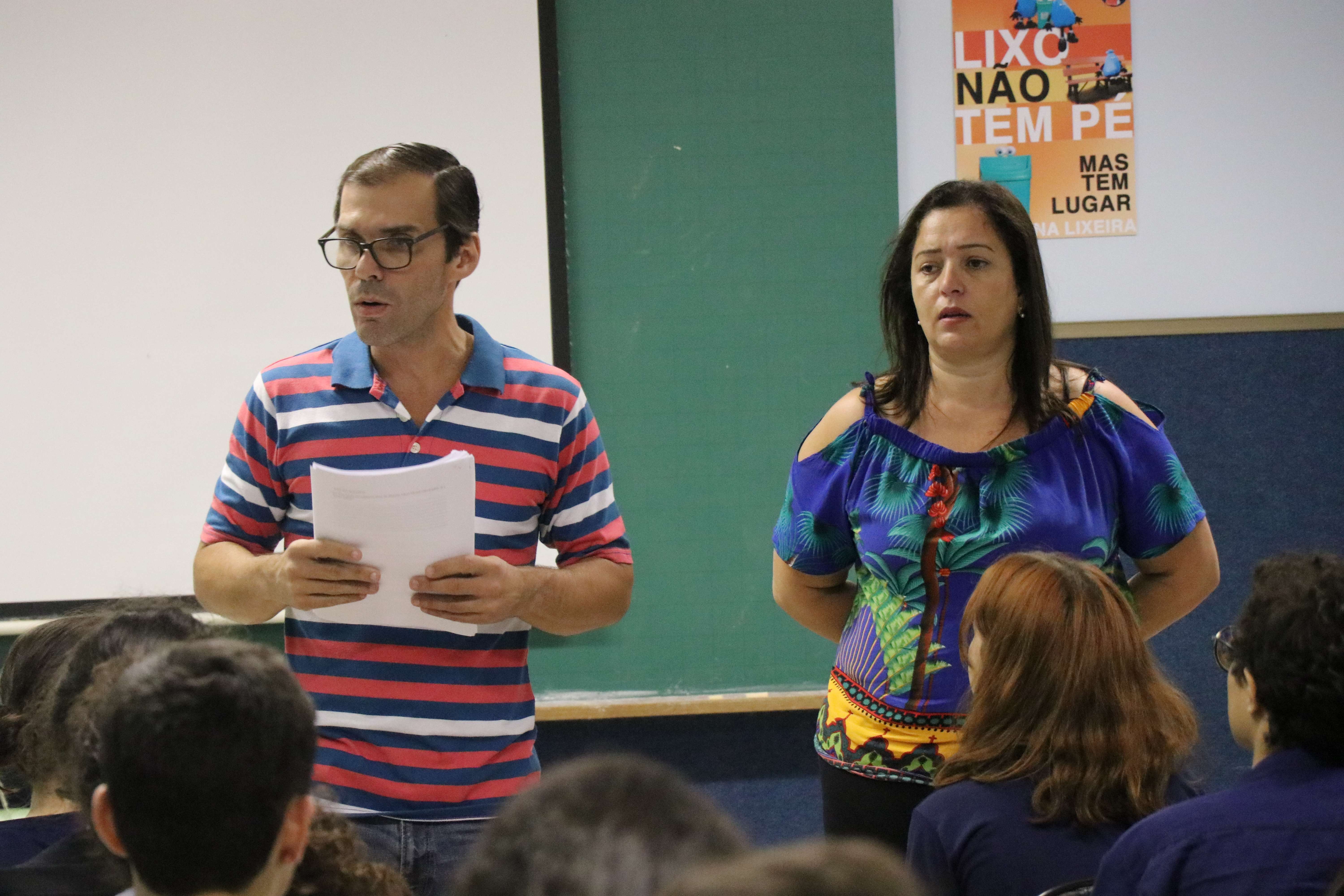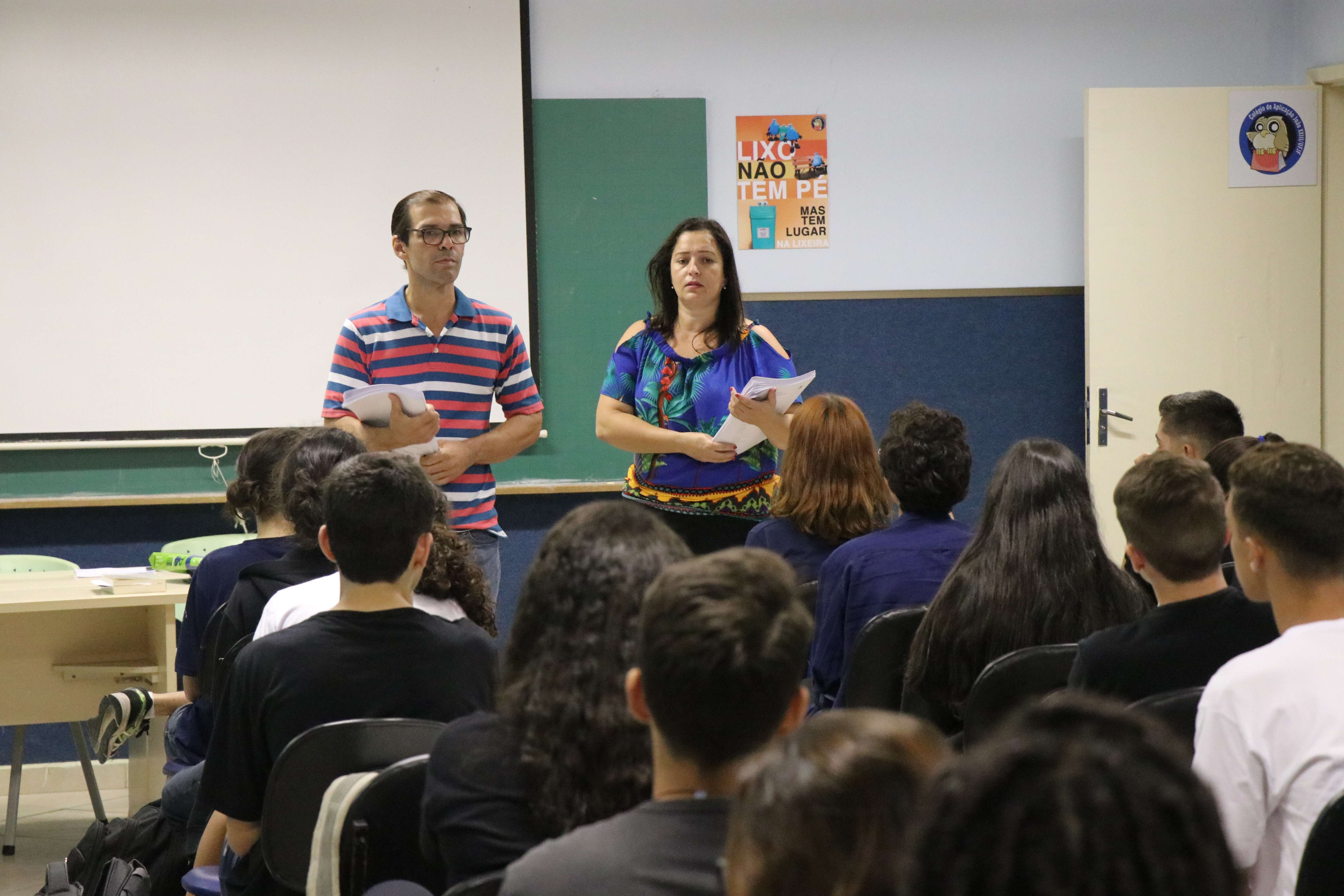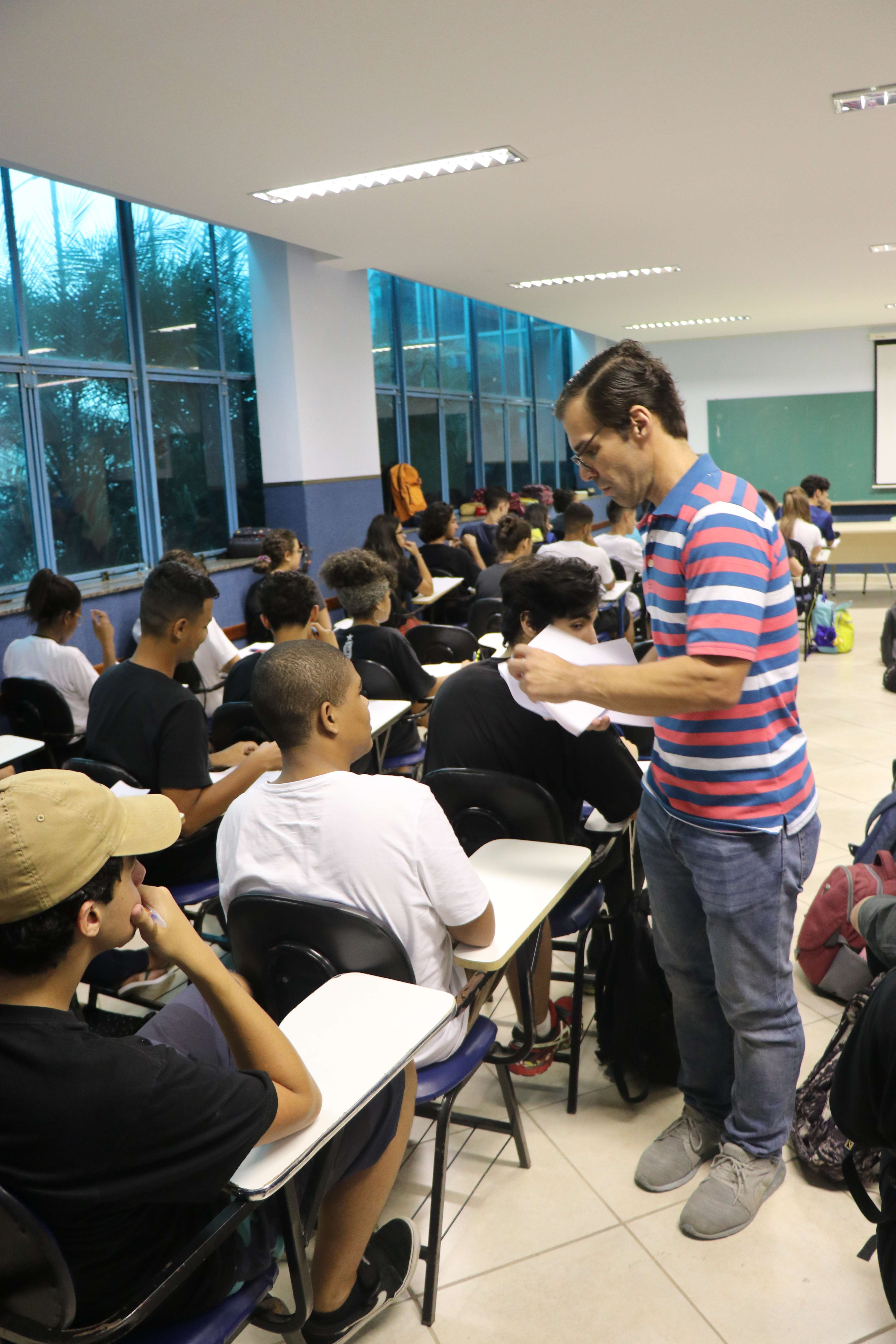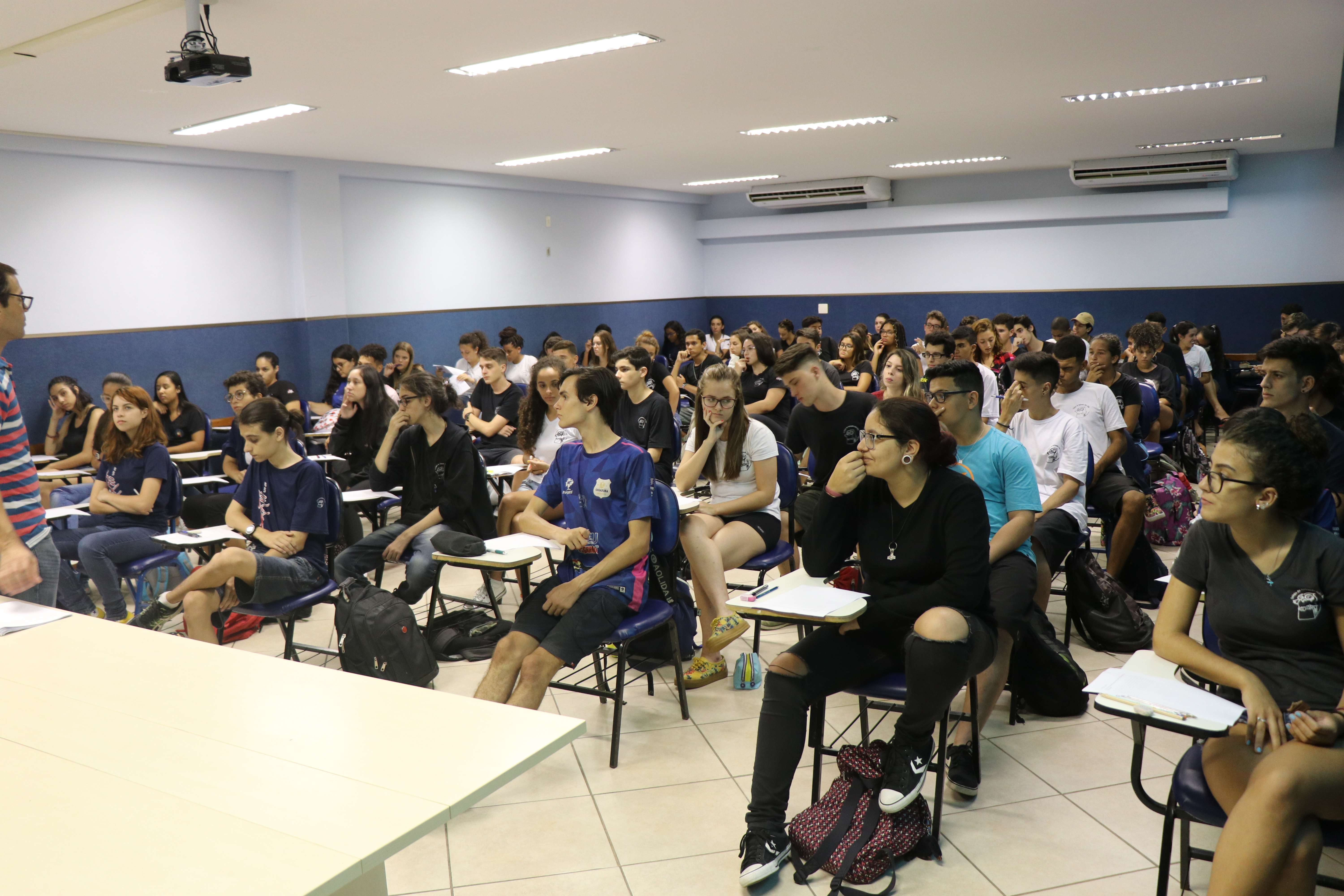 A primeira fase aconteceu às 15h no Anfiteatro do Ensino Médio e consistiu na realização de uma prova escrita, que examinou conhecimentos de vocabulário,interpretação de texto e estrutura gramatical da Língua Inglesa, além do desempenho escrito, por meio de uma redação. Aproximadamente, 90 alunos fizeram a prova que totaliza 60% da pontuação total.