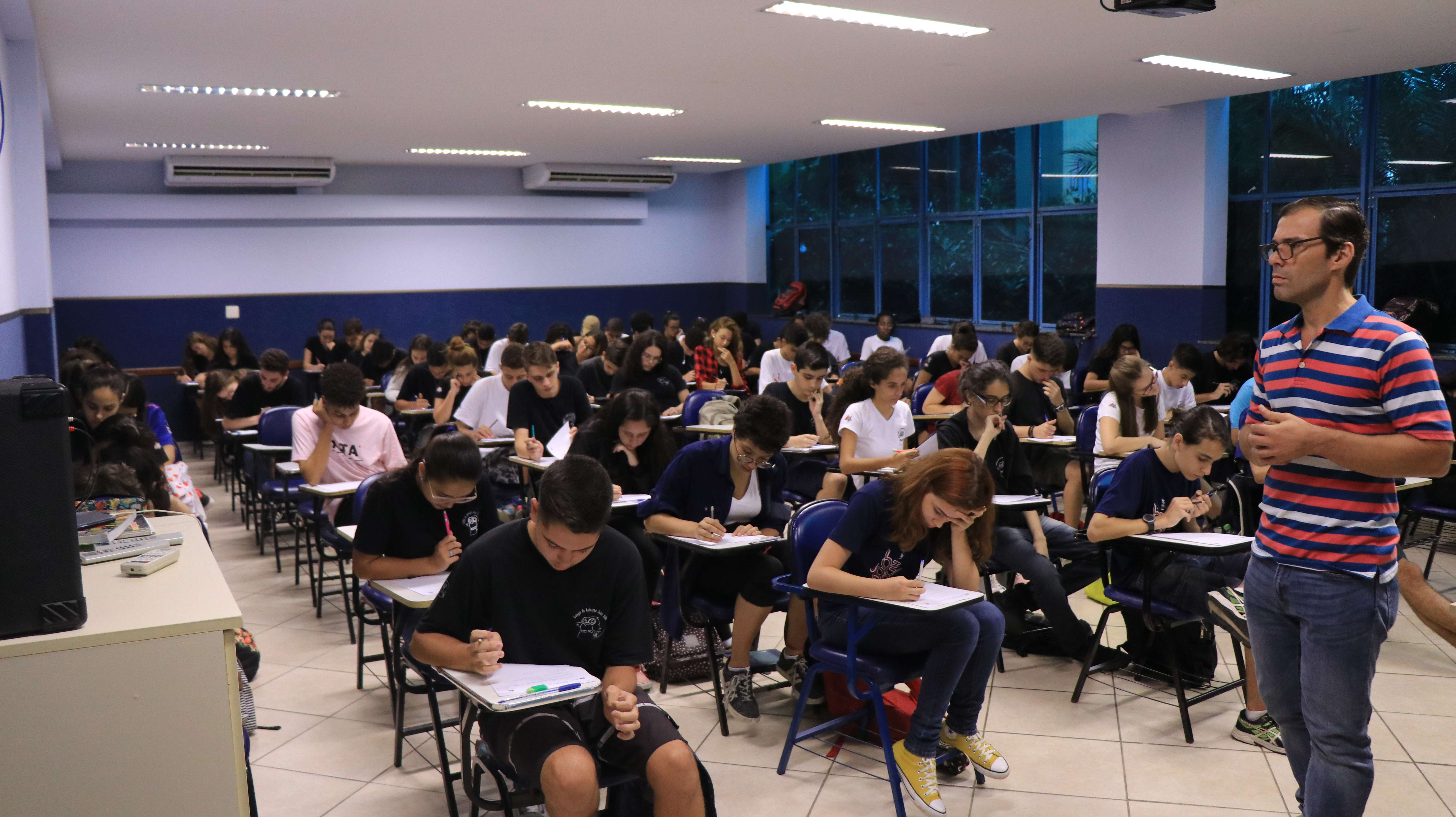 Os alunos do Ensino Médio do Colégio João XXII e Educação Jovens e Adultos (EJA) participaram nesta segunda-feira da primeira fase do exame de Proficiência em Língua Inglesa. As provas têm objetivo de avaliar as competências de cunho pedagógico na língua e, para os alunos que tenham a partir da idade mínima de 16 anos completos, o exame é referência e pré-requisito para participar do processo de seleção no Projeto de Intercâmbio com a Dinamarca.