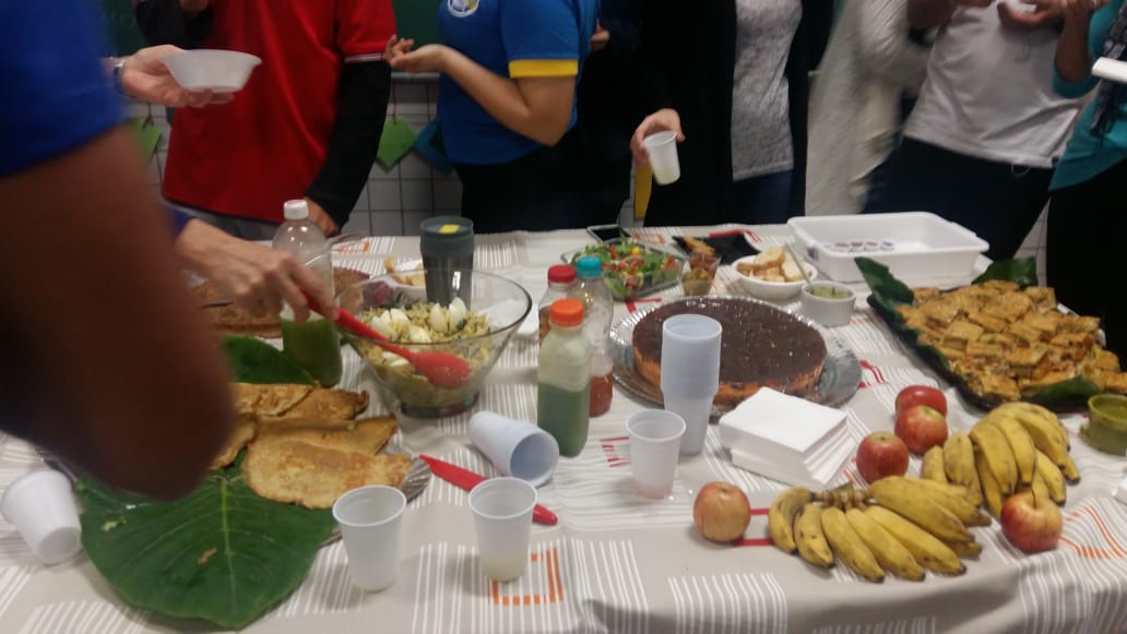 Na atividade foram produzidos: torta de frango com taioba,farofa de taioba com ora pro nobis, peixe frito, salada de capuchinha, patê de ora pro nobis, brigadeiro de pimenta rosa, bolo de casca de banana, bolo de beterraba, suco de abacaxi com gengibre e ora pro nobis,suco de banana, beterraba , laranja e capim limão, e picles caseiro.
