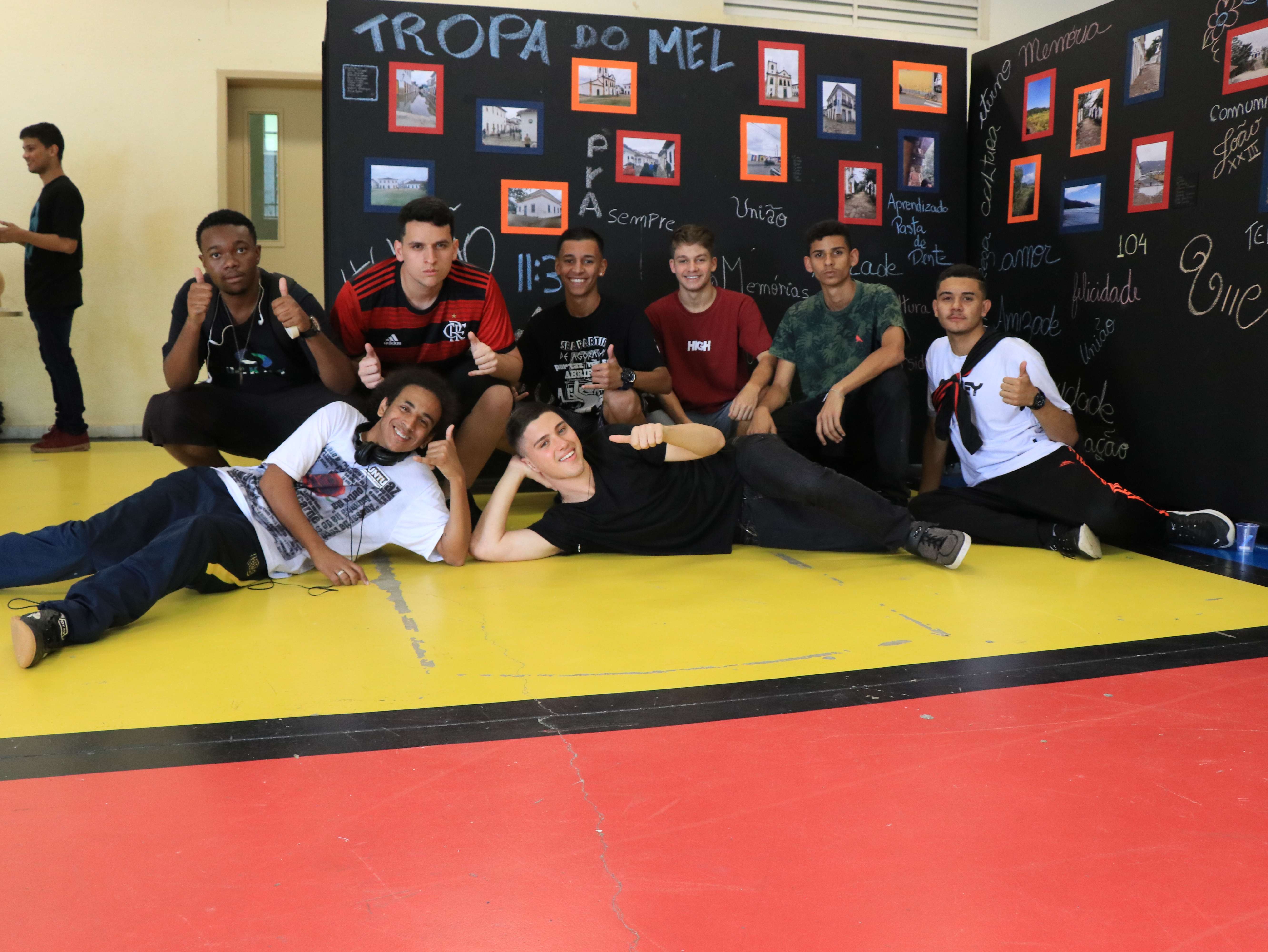 Para marcar o encerramento das atividades, alunos dos terceiros anos do Ensino Médio participaram de uma mostra de trabalhos coletivos. Trata-se do projeto “Pés na Estrada” organizado por professores de diversos departamentos: Geografia, História, Literatura, Português, Matemática, Sociologia e Artes.