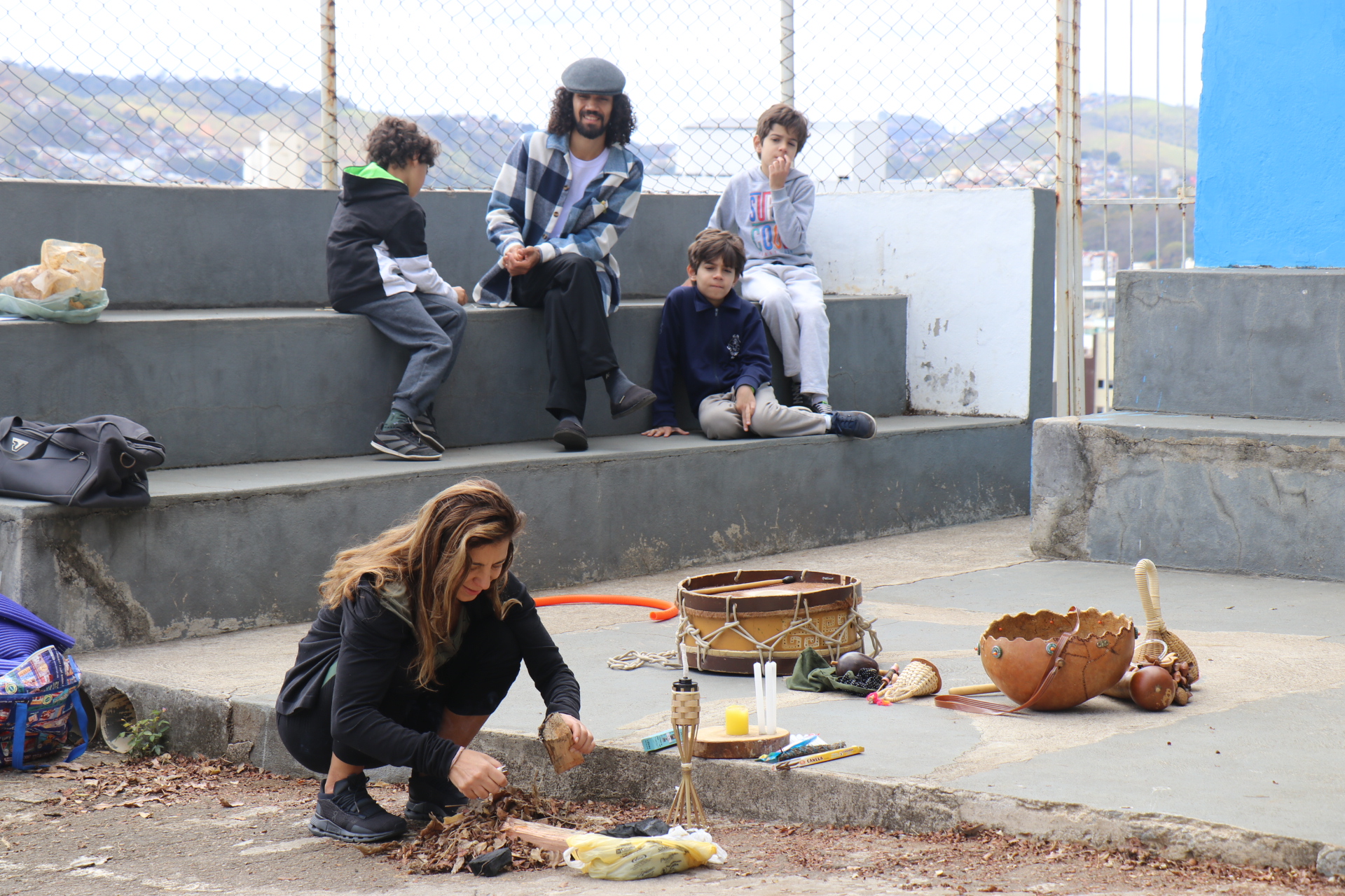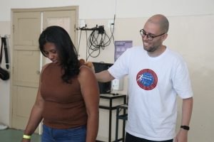 A oficina de meditação e automassagem foi ofertada para os(as) responsáveis pelos(as) nossos(as) estudantes e servidores(as) do colégio. Nela, foi possível vivenciar técnicas de respiração consciente, meditação guiada e exercícios de automassagem com as próprias mãos e com o auxílio de objetos simples presentes no nosso cotidiano como bolinhas e colheres de pau. A sala do tatame foi ambientada com pouca luminosidade, aromas de incensos e sons que estimulassem o relaxamento. Segundo o professor Filipe França, a proposta da oficina foi “proporcionar aos participantes um momento de consciência, autoconhecimento e reconexão consigo mesmos”.