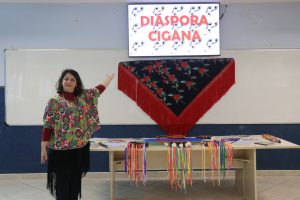 A oficina de “Danças Ciganas de Roda” trouxe a vivência de ritmos e movimentos dançantes relativos aos povos ciganos – ou rhoma, como também são designados – de diferentes partes do mundo, e também um pouco do seu processo histórico através dos tempos, bem como a situação em que vivem no Brasil nos dias atuais. “Foi, ao mesmo tempo, um momento de muita descontração e de conscientização acerca da dura realidade que várias pessoas de origem/etnias ciganas são submetidas em nosso país e ao redor do mundo como um todo” – explicou a professora Janaina Sanches.