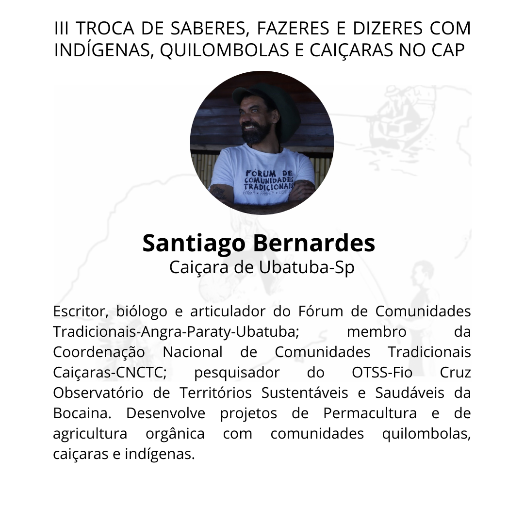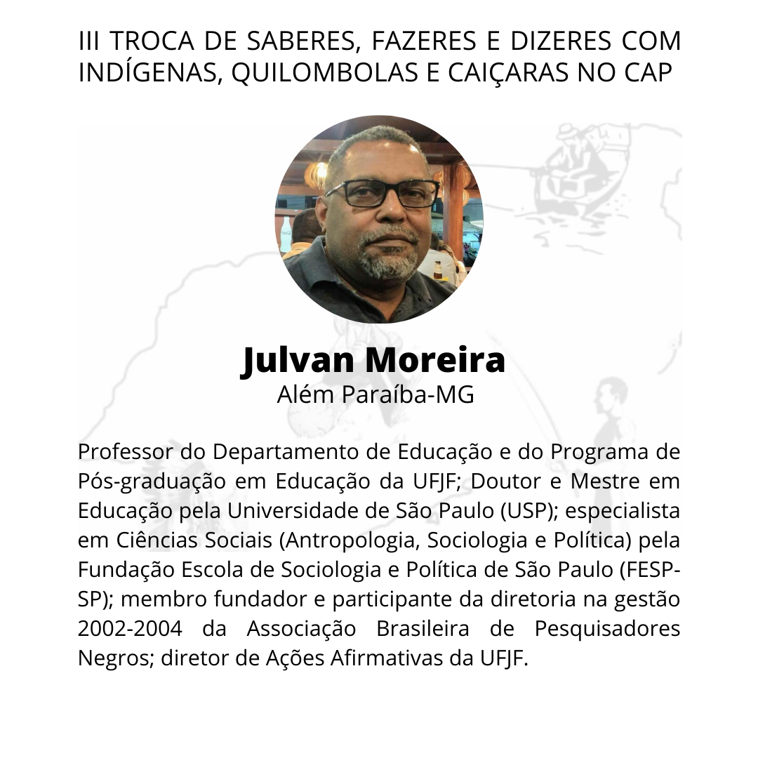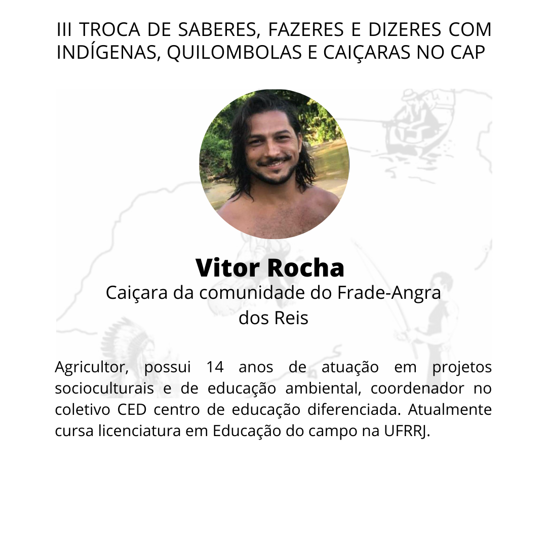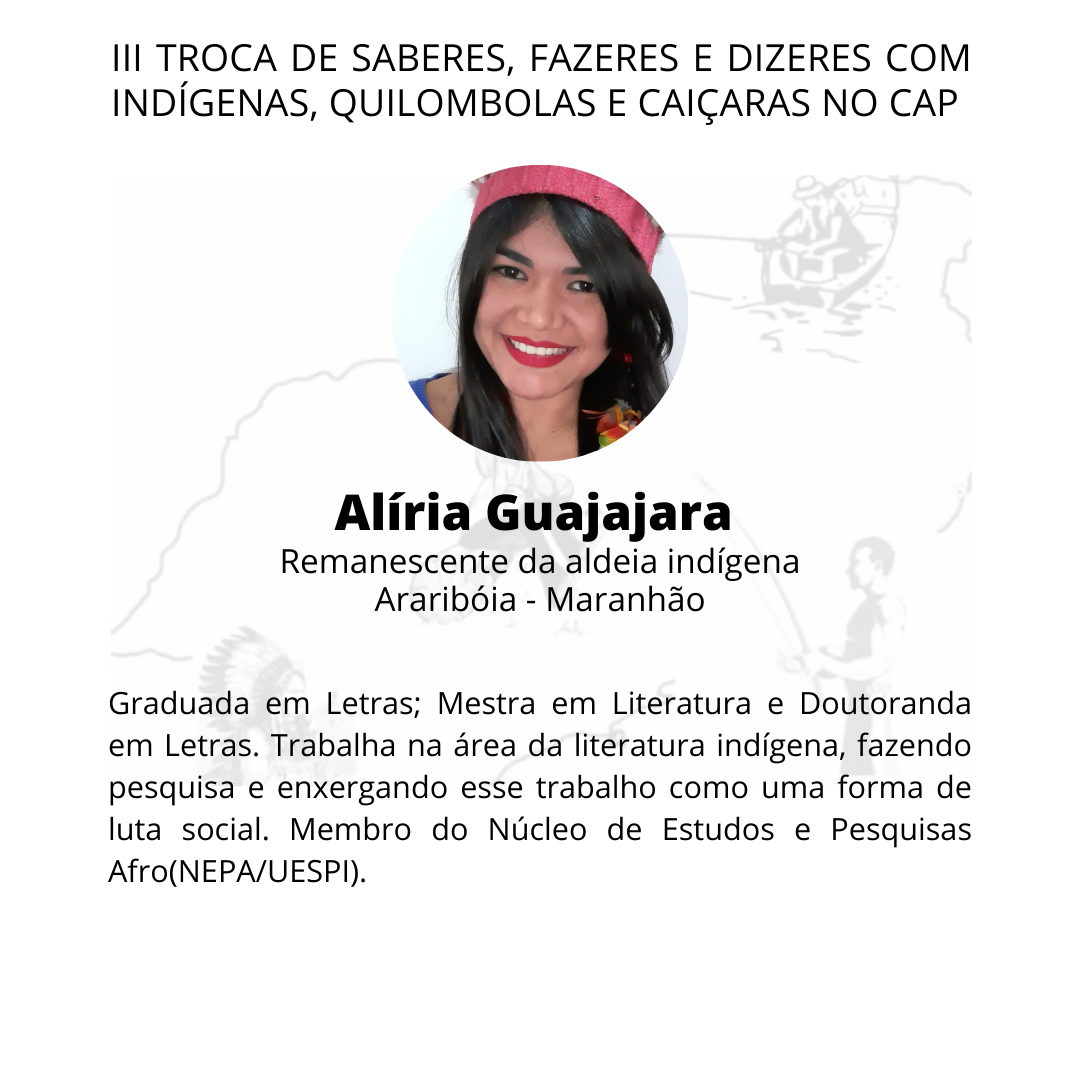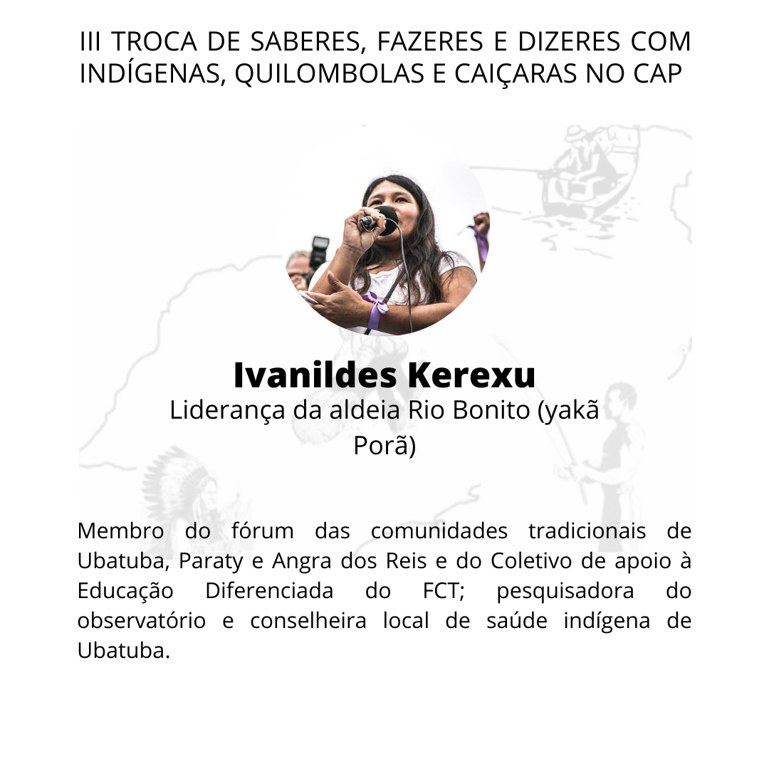 O “III Troca de Saberes e Fazeres Indígenas e Quilombolas On line do CAp” acontece dia 11 de junho, no canal do Youtube do Colégio de Aplicação João XXIII, a partir das 15:30h. Esse ano, o evento aborda os “Métodos de ensino que atenderão as demandas de um mundo pós pandêmico”, reunindo em uma live, lideranças e pesquisadores indígenas e quilombolas, caicaras e portugueses. A programação também inclui uma carta (a modelo Paulo Freire) dos formandos do Ensino Médio para os futuros alunos do CAp, frisando tópicos que deverão ser cuidados para vivermos tranquilos em sociedade.