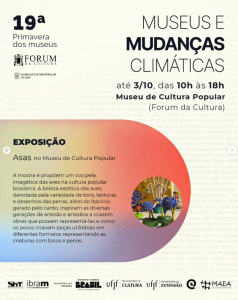 Vem aí a . Neste ano, o tema é “Museus e Mudanças Climáticas”. Dia (22.09), próxima segunda-feira, às 19h, teremos um bate-papo com o Prof. Dr. Henrique Costa (UFJF) com o tema “Mudanças climáticas e os impactos na biodiversidade.” E a mostra ‘Asas’ segue em cartaz no Museu de Cultura Popular. 🌍