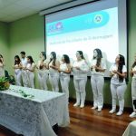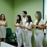 Alunos do 10º período do curso de Enfermagem da Universidade Federal de Juiz de Fora durante a Cerimônia da passagem da Lâmpada, com a participação da Professora Doutora Angélica da Conceição Oliveira Coelho. Imagem/Reprodução: Acervo pessoal.