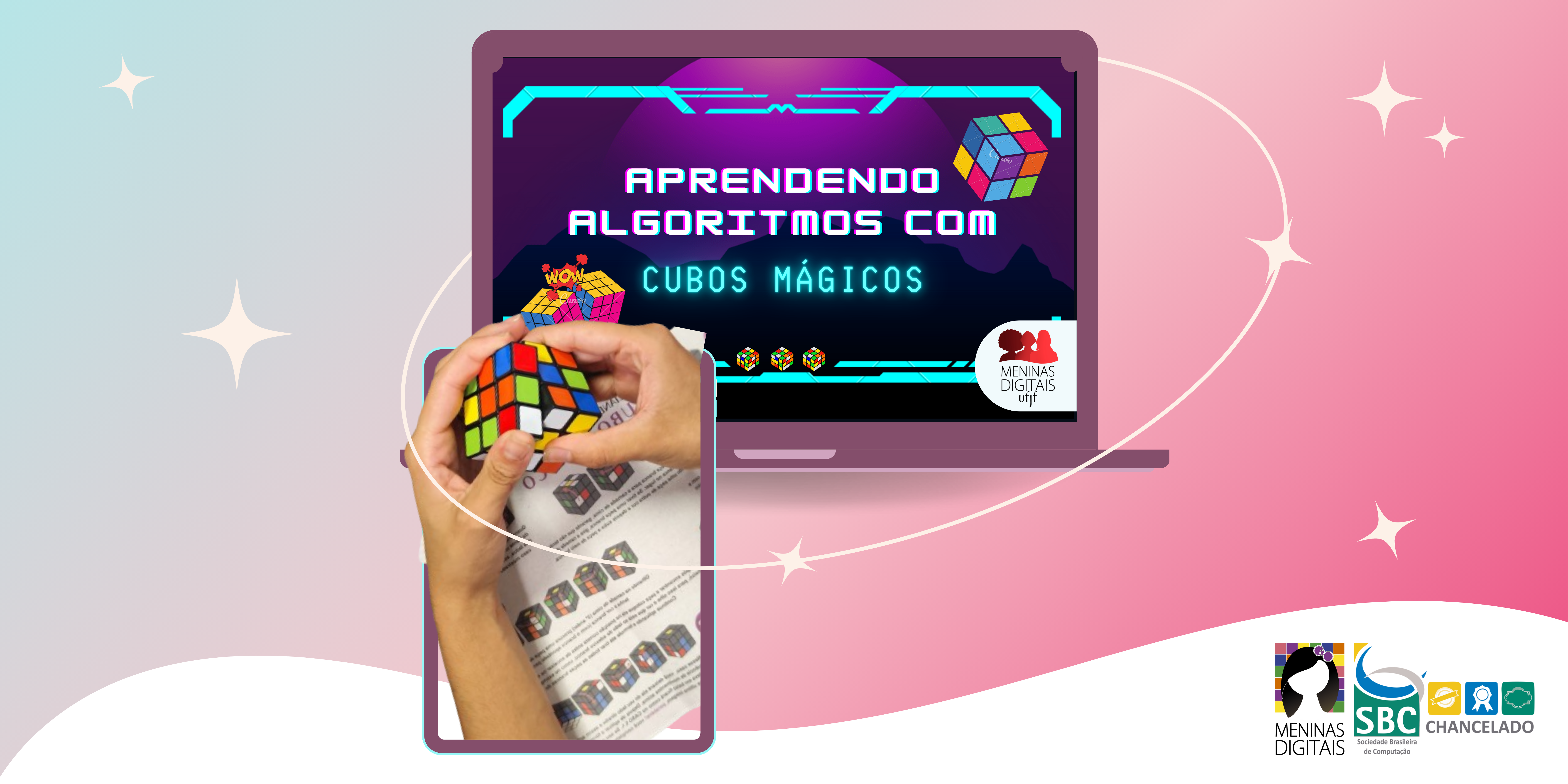 Vamos exemplificar com uma tarefa que sempre fazemos: arrumar nosso quarto. Sempre que começamos, escolhemos qual a 1º tarefa a ser feita, qual a 2º e assim por diante. Geralmente, para que a gente chegue na 2º tarefa precisamos finalizar a 1º, assim tudo ocorre de forma correta! É exatamente desse jeito que algoritmos funcionam, transformando tarefas complicadas em pequenos passos mais simples, e nossa oficina mostra isso na prática aprendendo a resolver CUBOS MÁGICOS!