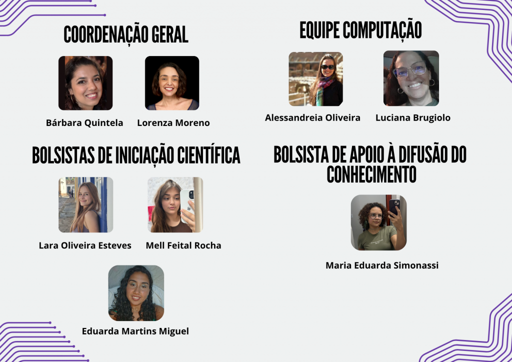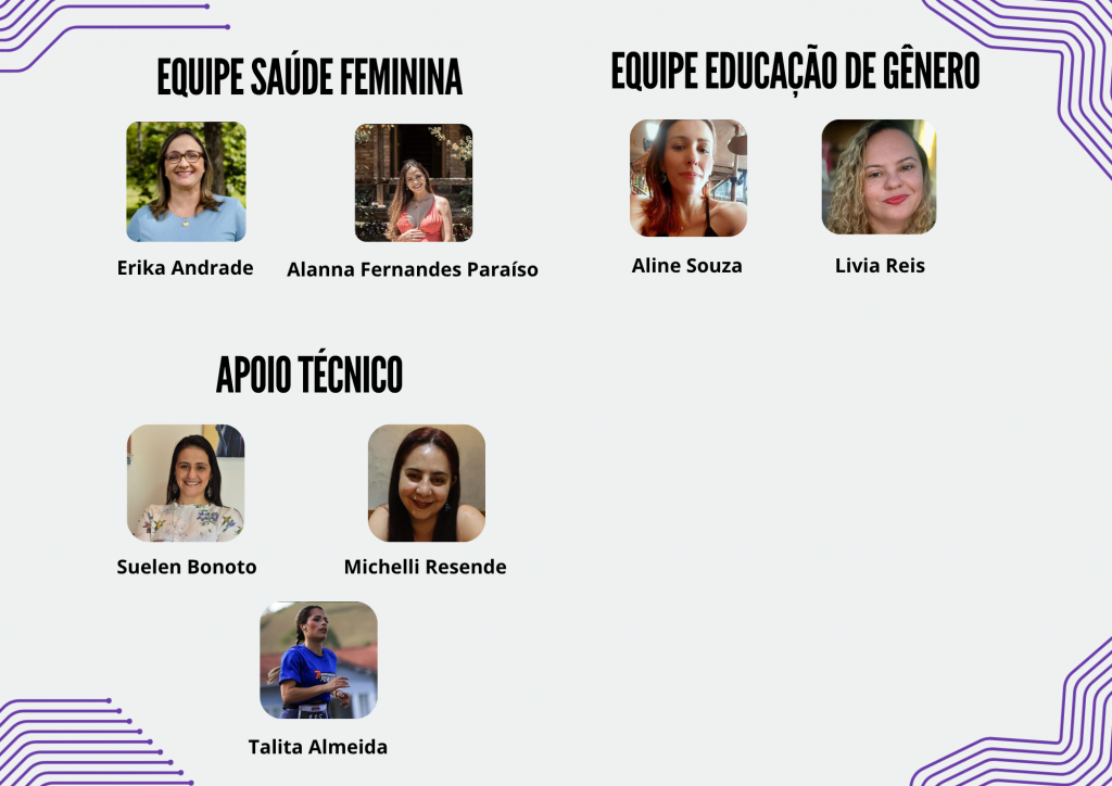 Equipe composta por Pesquisadoras da UFJF da área de Computação e Saúde, Profissionais Especialistas em estudos de Gênero, bolsistas de Iniciação Científica de Graduação e Ensino Médio e Professoras do Ensino Médio.