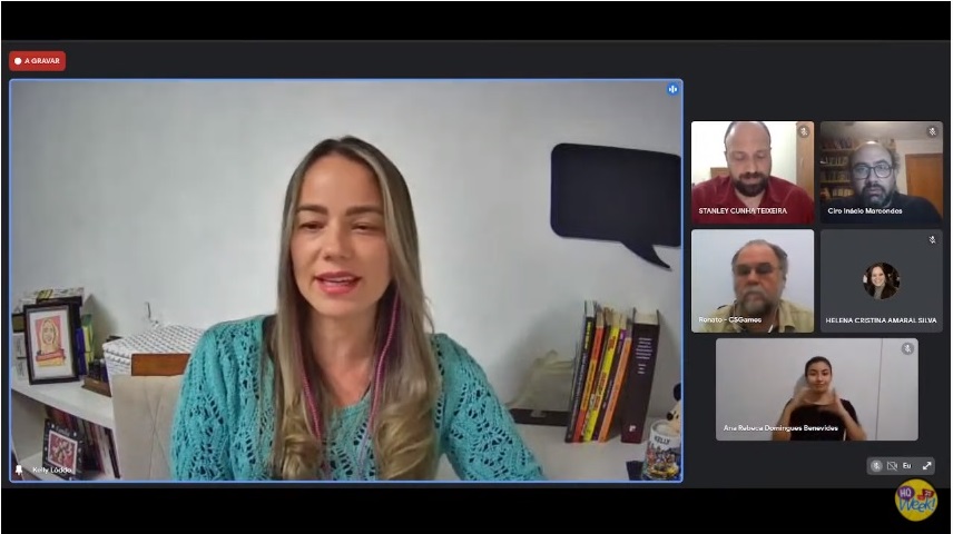 - Professora Kelly Cezar, coordenadora do do grupo de pesquisa Tecnologias Digitais na Educação, durante abertura da HQWeek! 2021.
