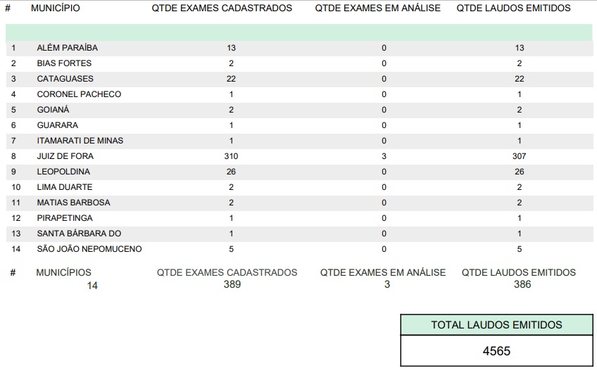 Confira a tabela com as informações apresentadas separadamente por município de origem das amostras e o total acumulado de exames feitos desde o dia 17 de abril, início dos testes.