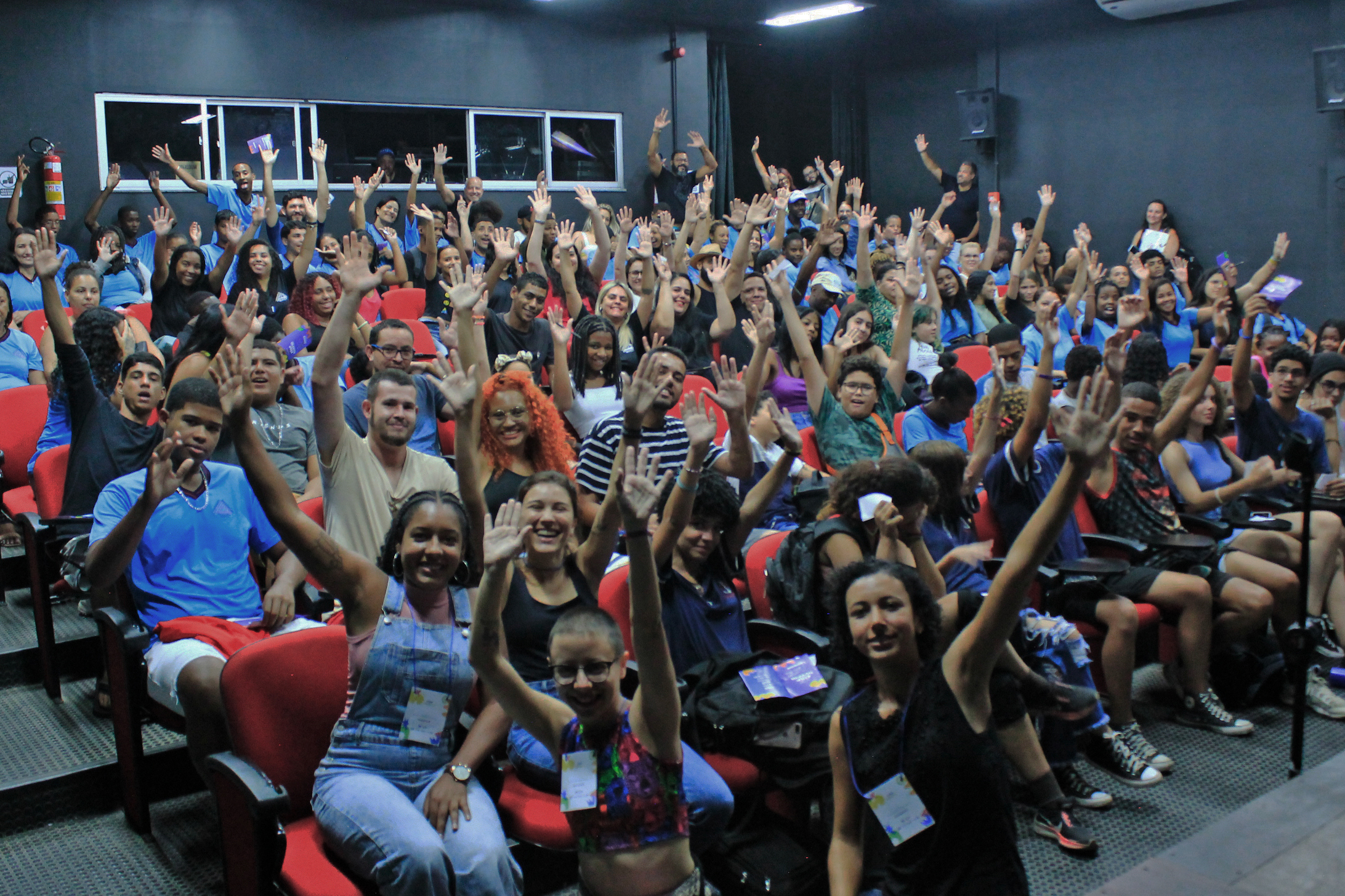 Primeiro dia da Mostra, realizada no anfiteatro da Praça Céu, em Benfica, reuniu jovens para a exibição das produções selecionadas no projeto