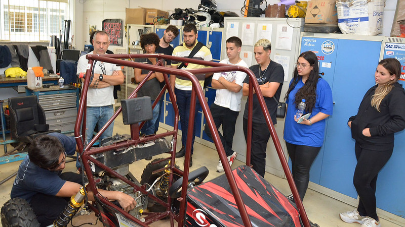 Turma conheceu um pouco mais da equipe de competição de carros Baja, da Faculdade de Engenharia (Foto: Alexandre Dornelas)