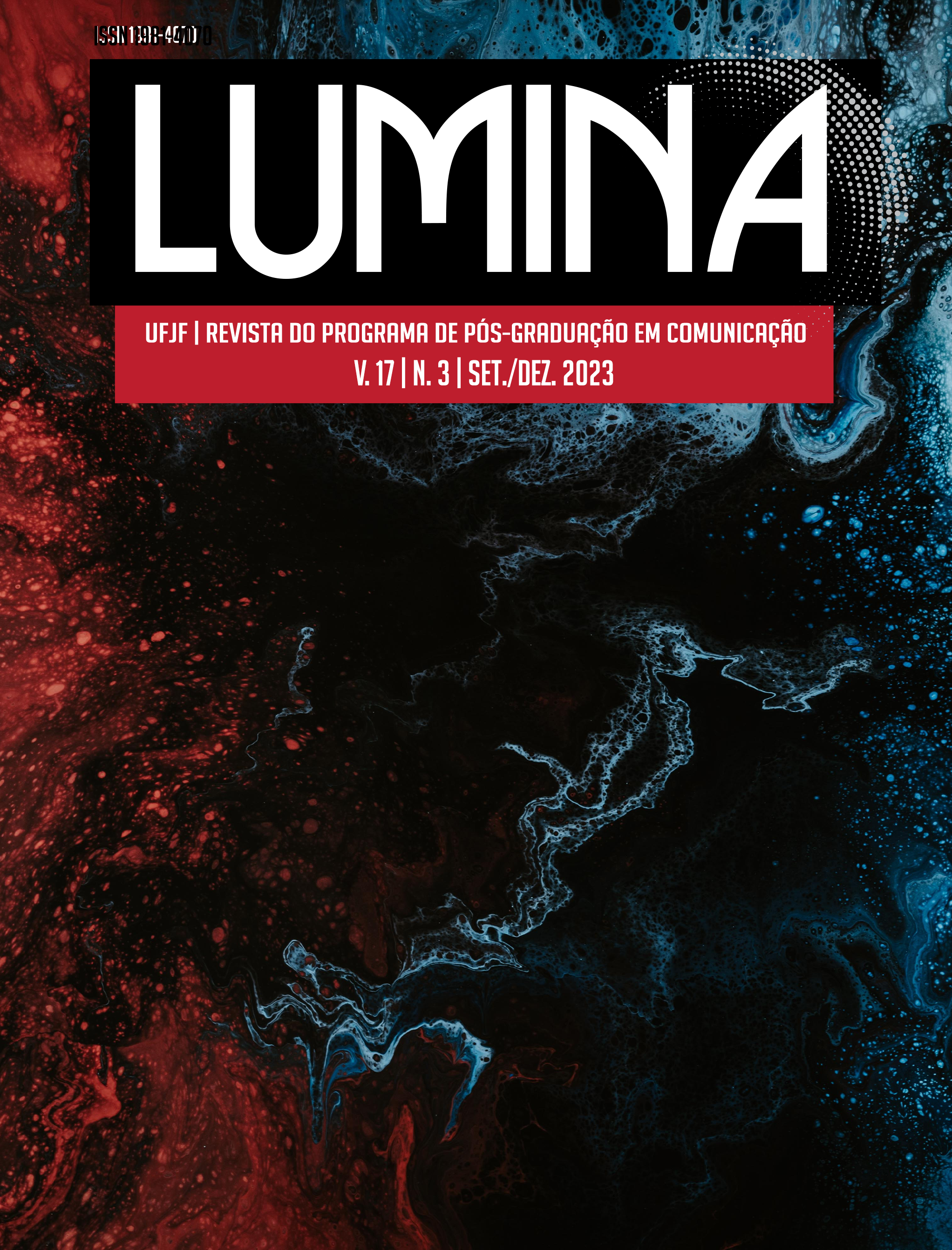 Está disponível a mais recente edição da Lumina, revista do Programa de Pós-Graduação em Comunicação (PPGCom) da Universidade Federal de Juiz de Fora (UFJF). O número, que é também o último de 2023, apresenta artigos com reflexões sobre temas urgentes e de cunho social a partir do olhar particular proporcionado pelo campo da Comunicação.