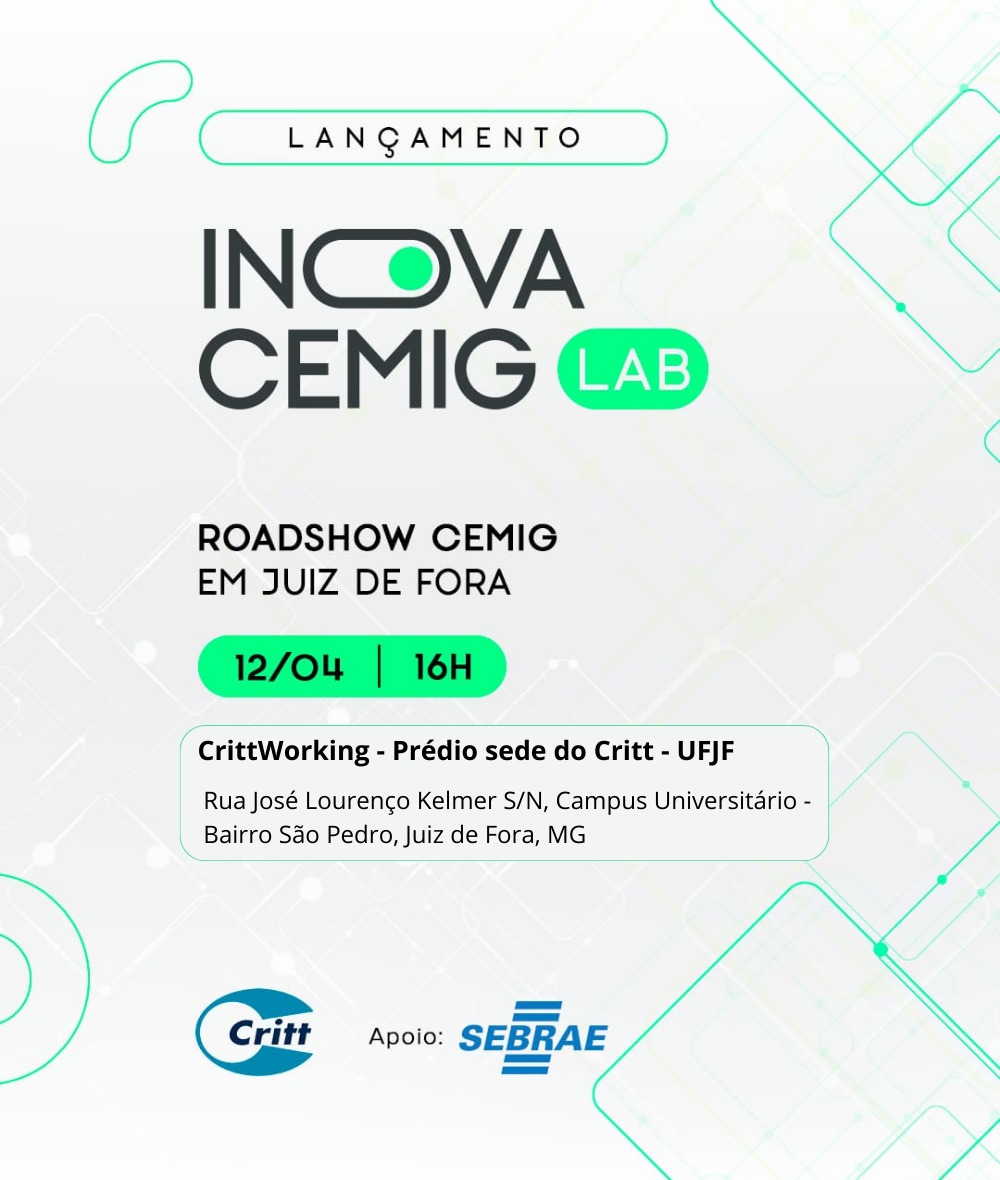 O Centro Regional de Inovação e Transferência de Tecnologia (Critt) da Universidade Federal de Juiz de Fora (UFJF) recebe o evento de lançamento em Juiz de Fora, do Inova Cemig Lab, o programa de inovação aberta da Companhia Energética de Minas Gerais (Cemig). O encontro acontece nesta sexta-feira, 12, a partir das 16h, no espaço de coworking do Critt. Lançado em fevereiro de 2024, o Inova Cemig Lab é o maior programa de inovação aberta do mercado elétrico nacional. A iniciativa é realizada com o objetivo de aproximar a concessionária de energia elétrica de startups e do ecossistema empreendedor, para o desenvolvimento de soluções inovadoras e sustentáveis voltadas ao setor elétrico brasileiro. O lançamento é realizado em parceria com o Critt e com o apoio da unidade de Juiz de Fora do Serviço de Apoio às Micro e Pequenas Empresas (Sebrae).