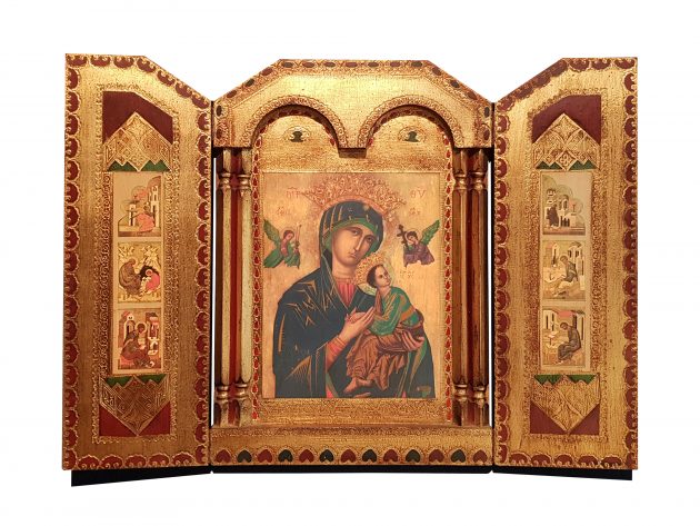 Tríptico de Nossa Senhora do Perpétuo Socorro em madeira policromada (Itália, acervo particular) é uma das peças em exposição na mostra (Foto: Divulgação)