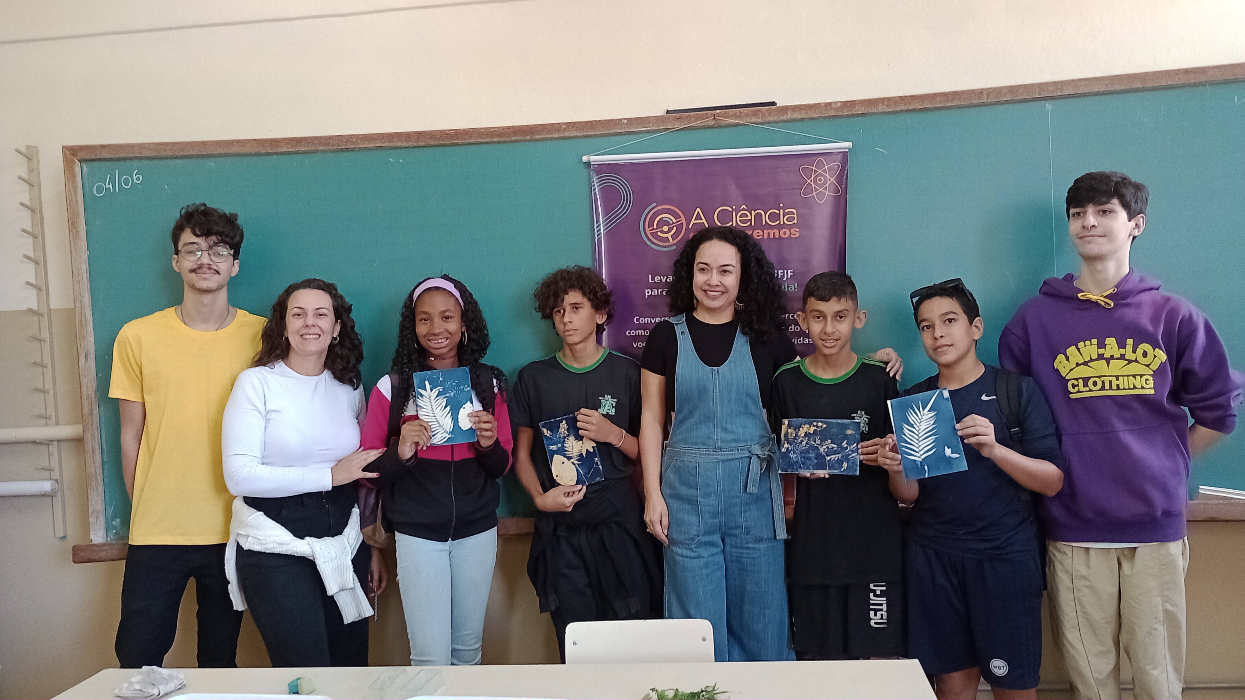 A cientista foi à escola para conversar com os estudantes sobre a relação da química com a fotografia e levou para a turma a experiência de fazer fotos no papel. O encontro faz parte do projeto de extensão “A ciência que fazemos”, da UFJF, que procura aproximar a pesquisa acadêmica do cotidiano e desmistificar a imagem estereotipada do cientista na sociedade.