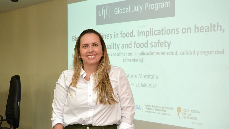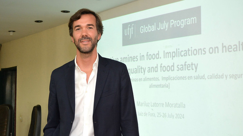 A explicação faz parte do curso “Aminas bioativas na alimentação: implicações na saúde, qualidade e segurança alimentares”, ministrado pela professora Mariluz Latorre Moratalla e pelo professor Oriol Comas Basté, da Universidade de Barcelona (Espanha), nestas quinta, 25, e sexta, 26, na Universidade Federal de Juiz de Fora (UFJF). A oferta faz parte do Global July, iniciativa anual de internacionalização da UFJF com 25 minicursos lecionados por  professores locais e estrangeiros, em espanhol, francês, inglês e italiano. O evento começou no dia 22 de julho e segue até 9 de agosto. Ainda há vagas em 11 cursos (veja abaixo como se inscrever).