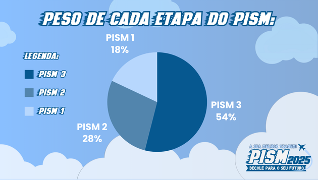 A pontuação do Pism é cumulativa: os Módulos I e II valem 120 pontos cada, e têm pesos 2 e 3, respectivamente. Já o Módulo III vale 140 pontos e tem peso 5.