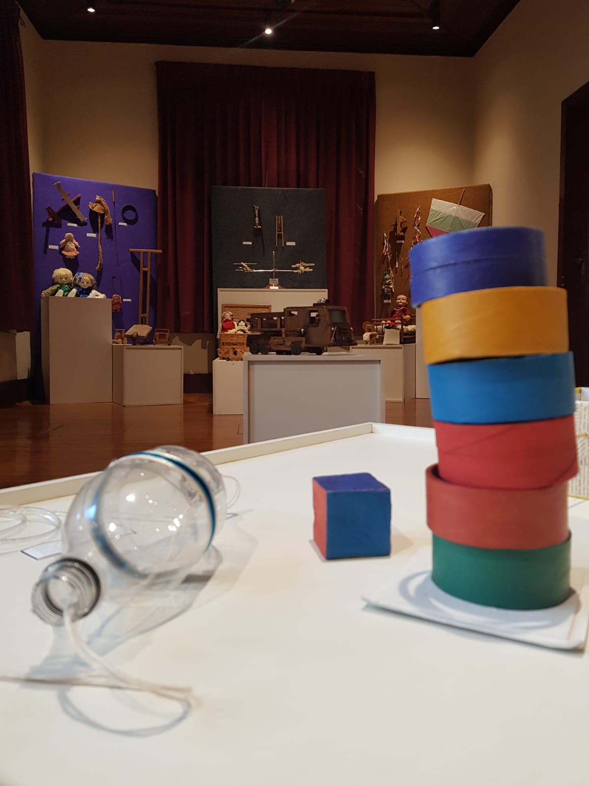 O visitante poderá conferir mais de 80 brinquedos confeccionados a partir de materiais como madeira, lata, tecido, plástico, palha, lã, entre outros. São quebra-cabeças, bonecas de pano, carrinhos, bicicletas em miniatura, pipa com sua rabiola e mais uma série de artefatos. O espaço do museu se transforma em uma verdadeira máquina do tempo, em que os mais velhos se reencontram com objetos que integram memórias afetivas, e os mais novos têm a possibilidade de conhecer um passado não tão distante. Também compõem a mostra bilboquês, palhaços, patinete, piões e miniaturas de roda-gigante e sombrinha.