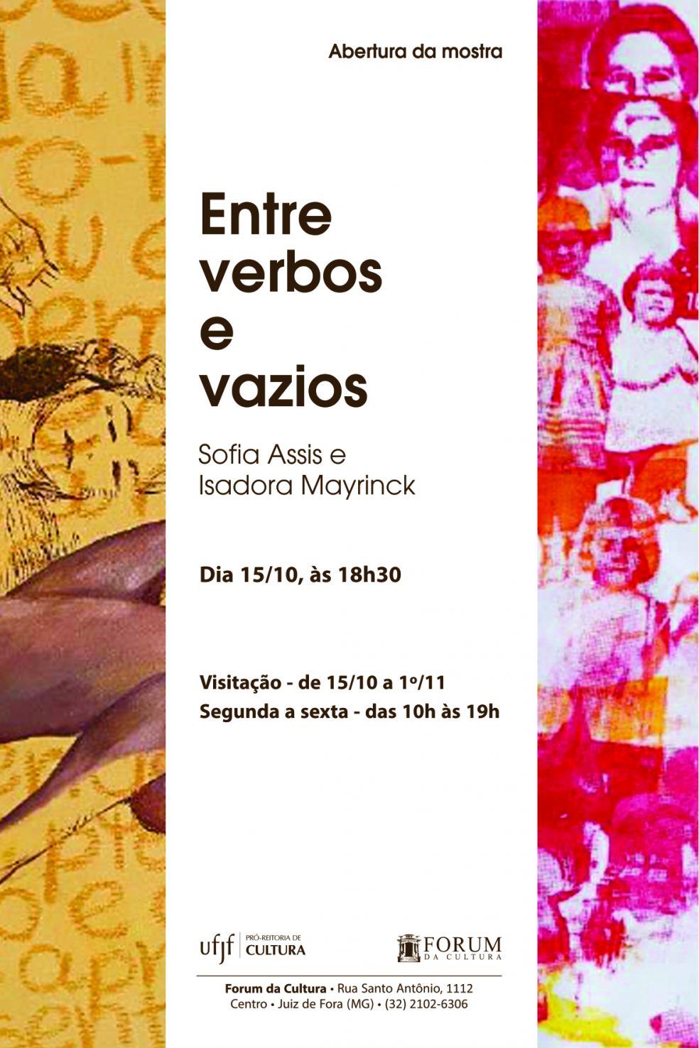 Entre o que se fala, o que se lê, o que se toca e o que simplesmente se contempla, há um vago. É nesse espaço que brotam sensações e reflexões. Essa á a experiência proporcionada pela exposição “Entre verbos e vazios”, das artistas visuais Isadora Mayrinck e Sofia Assis, nova atração da Galeria de Arte do Forum da Cultura da Universidade Federal de Juiz de Fora (UFJF). O vernissage de abertura é nesta terça-feira, 15, a partir das 18h30. A mostra fica em cartaz até o dia 1º de novembro.