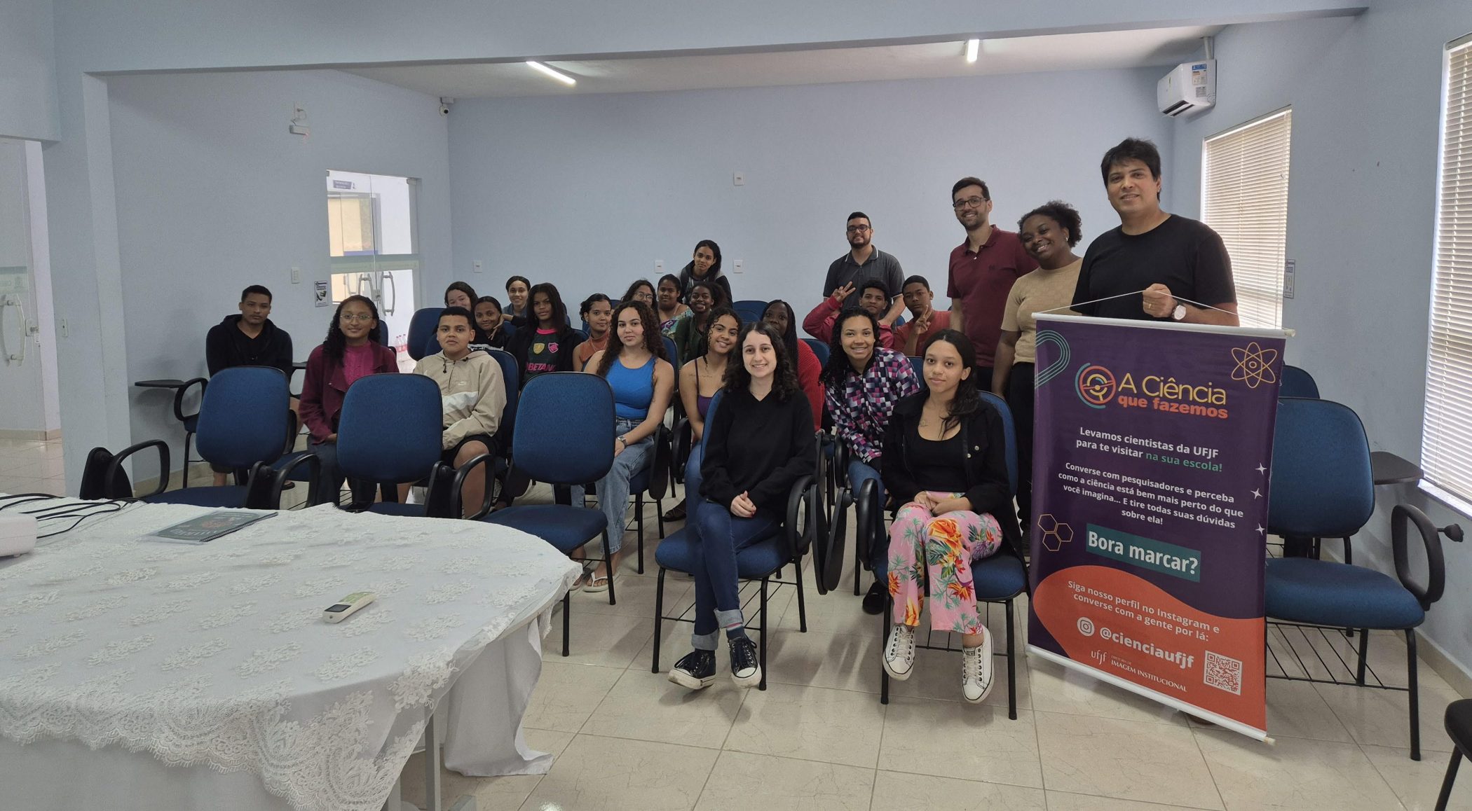 A atividade faz parte do projeto de extensão “A Ciência que Fazemos”, que tem como objetivo aproximar os pesquisadores da UFJF das escolas da região, desmistificar a imagem estereotipada do cientista e incentivar a conexão dos alunos do ensino básico com o ambiente acadêmico da universidade. A conversa aconteceu na última sexta-feira, dia 11.